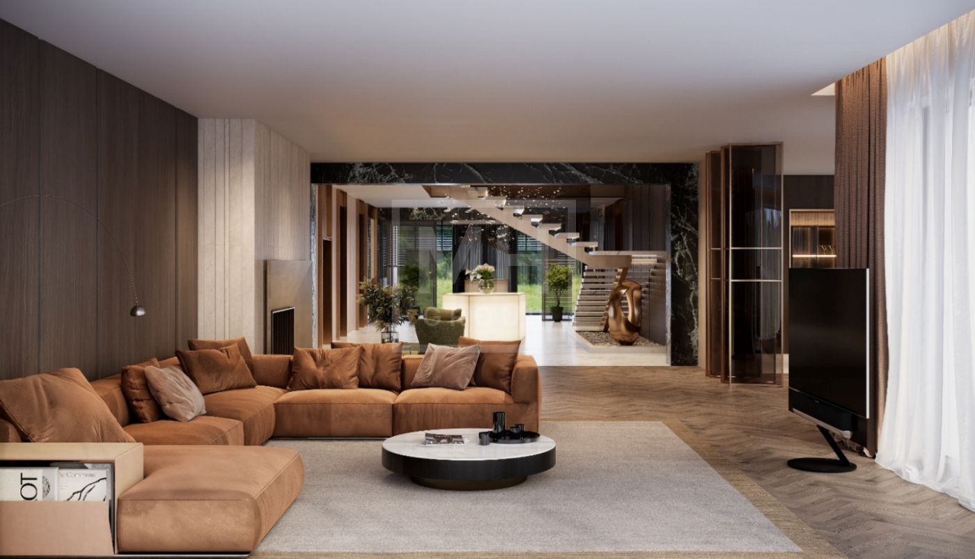 Цоколь: Домашний кинотеатр, комната отдыха, винный погреб, рабочая кухня, с/у, помещения для персонала, кладовые