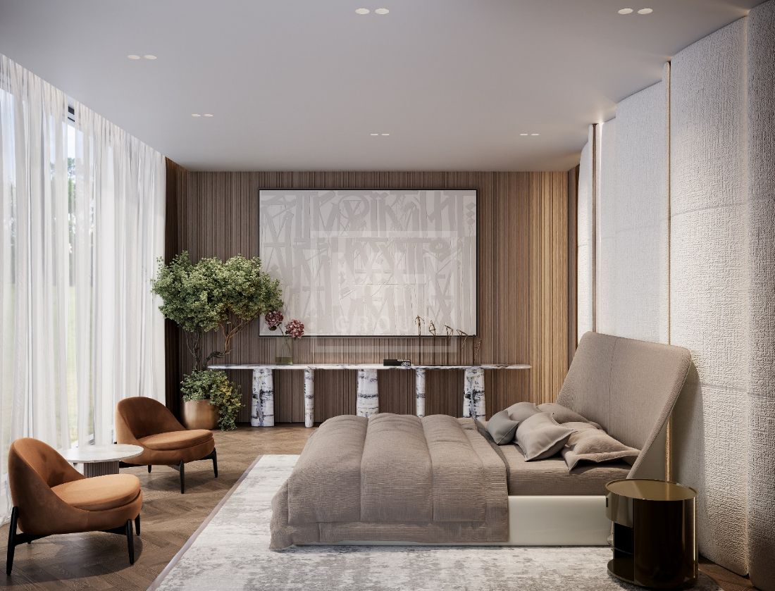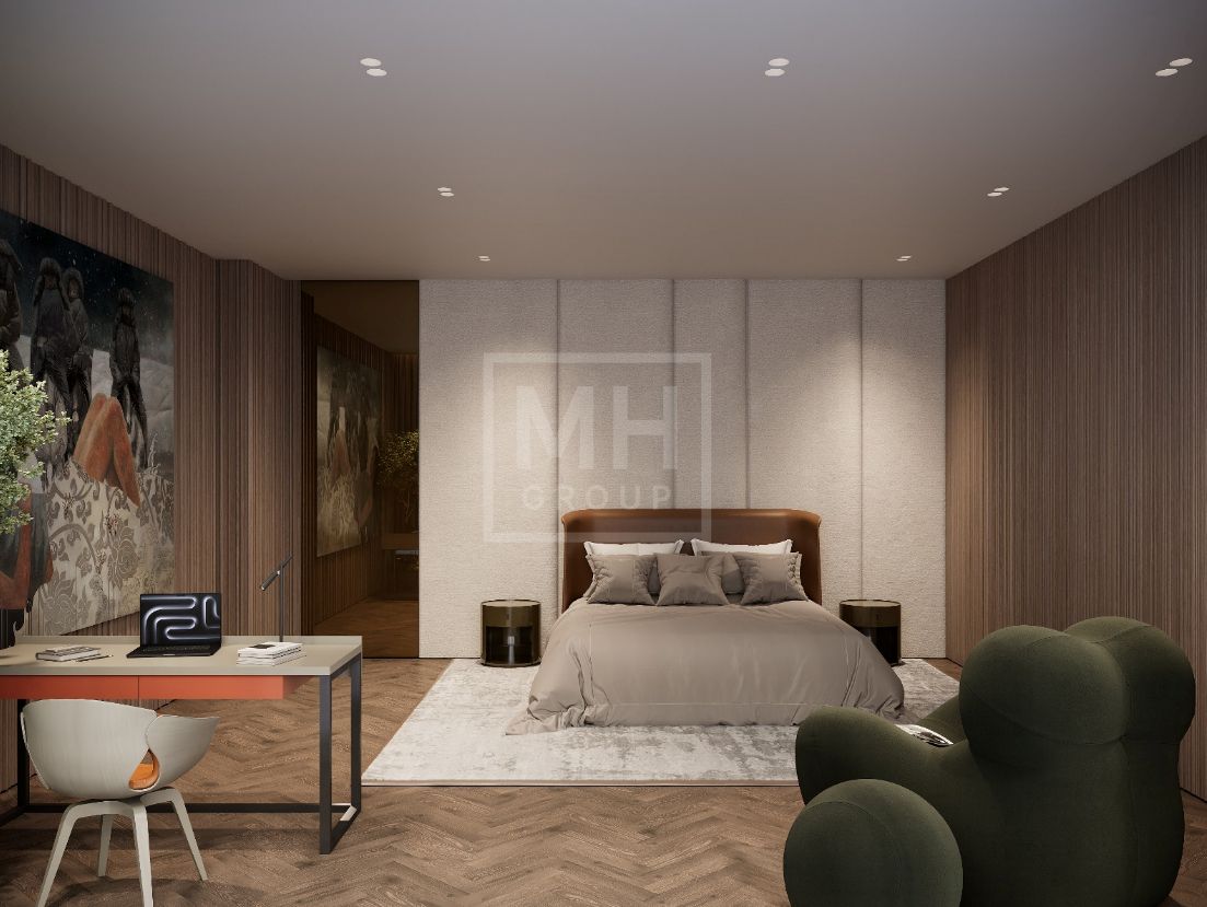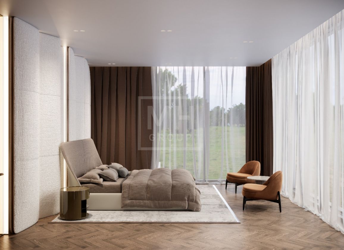 Этаж 2: мастер спальня с 2-мя гардеробными и 2-мя с/у, 3 спальни с с/у и гардеробными, спальня для няни с с/у, игровая с с/у и гардеробной, тренажерный зал, кладовые