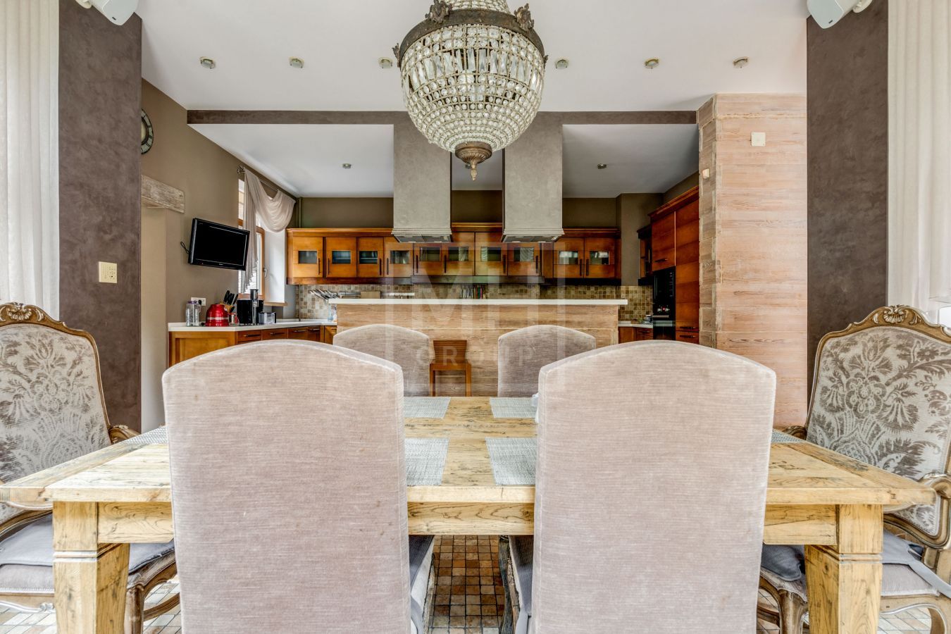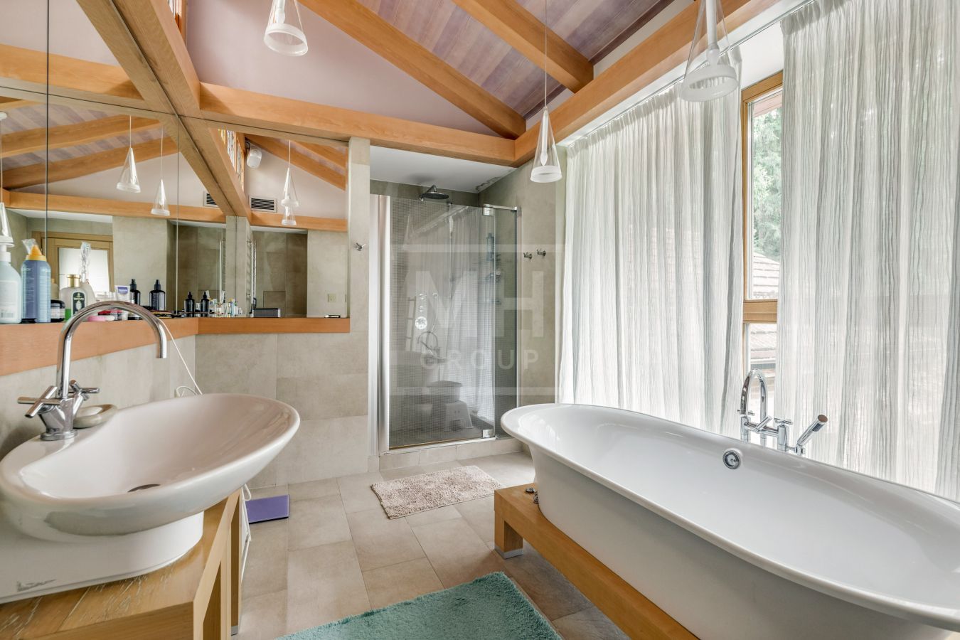 Светлый, просторный дом с высокими потолками, дизайнерский проект дома реализован с использованием дорогих европейских материалов, качественная мебель и техника. Дом расположен на большом участке 30 соток, отдельно построена баня из кедра с кухней и комнатой отдыха. Есть вольер для собак. Поселок в окружении 100Га векового хвойного леса.