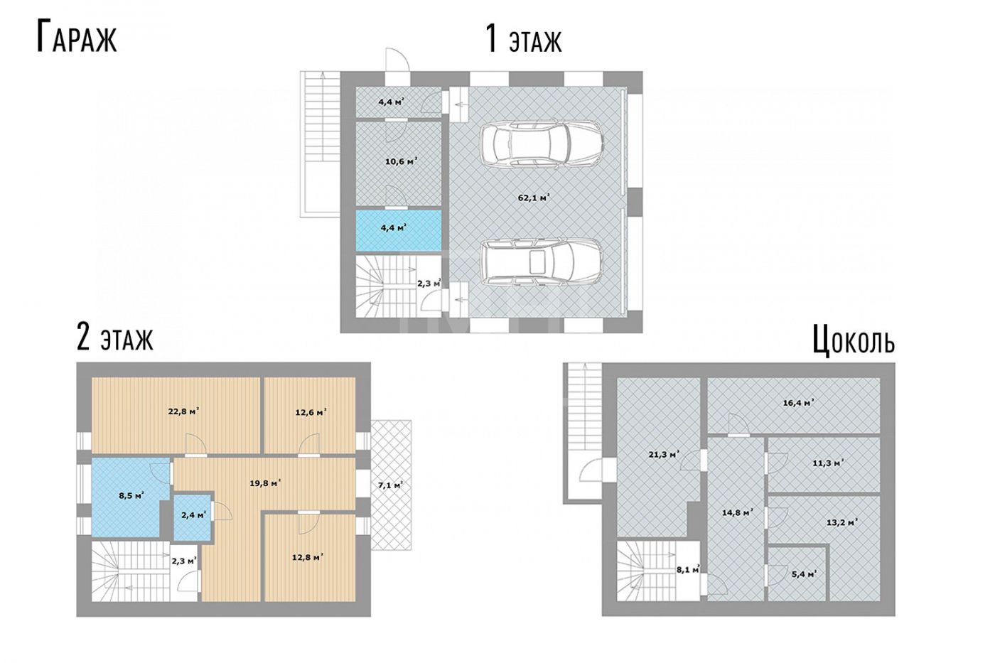 Этаж 2: холл, 4 спальни, с/у, постирочная, ванная, балкон.