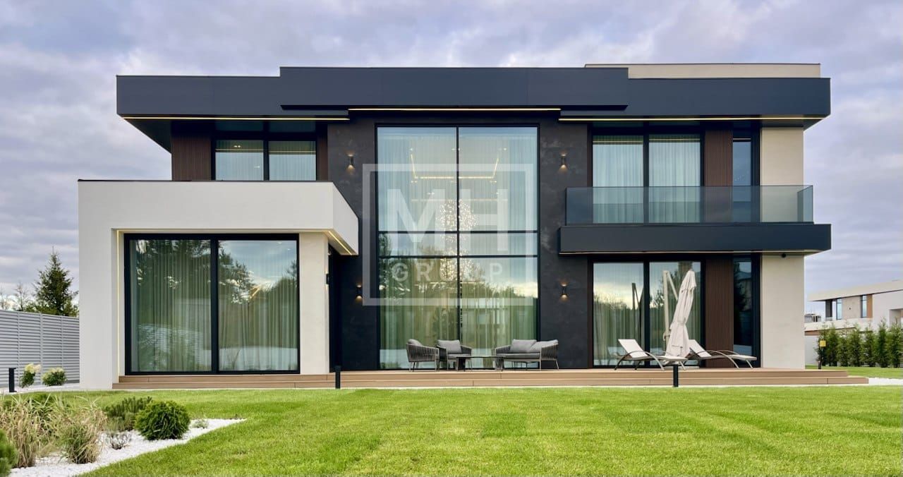 К продаже представлен современный дом в премиальном коттеджном поселке "Райт Хиллс". Все дома в поселке построены в едином стиле по мотивам архитектурных проектов Ф.Л. Райта. Участок с живыми насаждениями, правильной формы. В строительстве и отделке дома использовались дорогие, премиальные материалы. В доме панорамное остекление, установлены окна Schuco, которые наполняет дом светом и теплом. На первом этаже располагается большая кухня-гостиная со вторым светом, мастер спальня с гардеробной и своим санузлом, большой гараж на два машиноместа и большой навес на две машины. На втором этаже мастер-спальня с гардеробной и ванной комнатой, две спальни со своими гардеробными и большой ванной комнатой. Дом очень светлый, цветовая гамма подобрана с учетом всех современных тенденций включая отделку, мебель и предметы интерьера. В настоящее время выполняются отделочные работы, стоимость дома по окончании отделочных работ, в строительной готовности под ключ с мебелью - 320 млн.р.