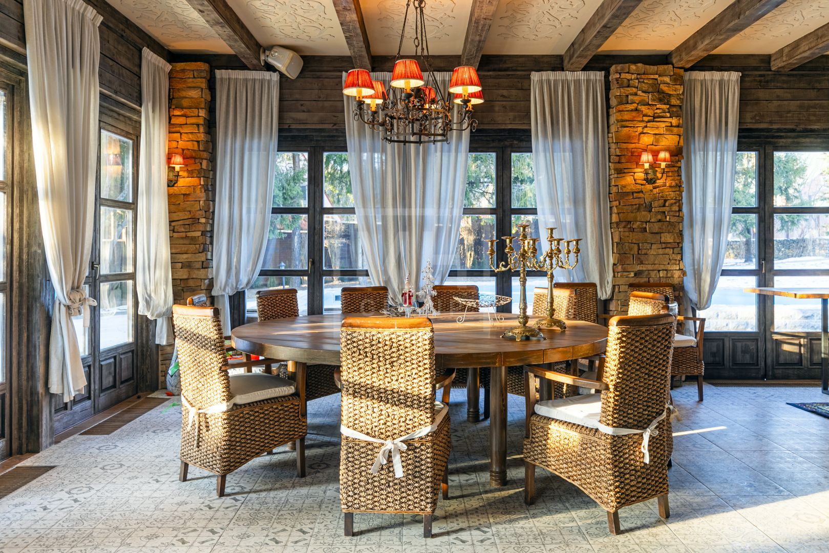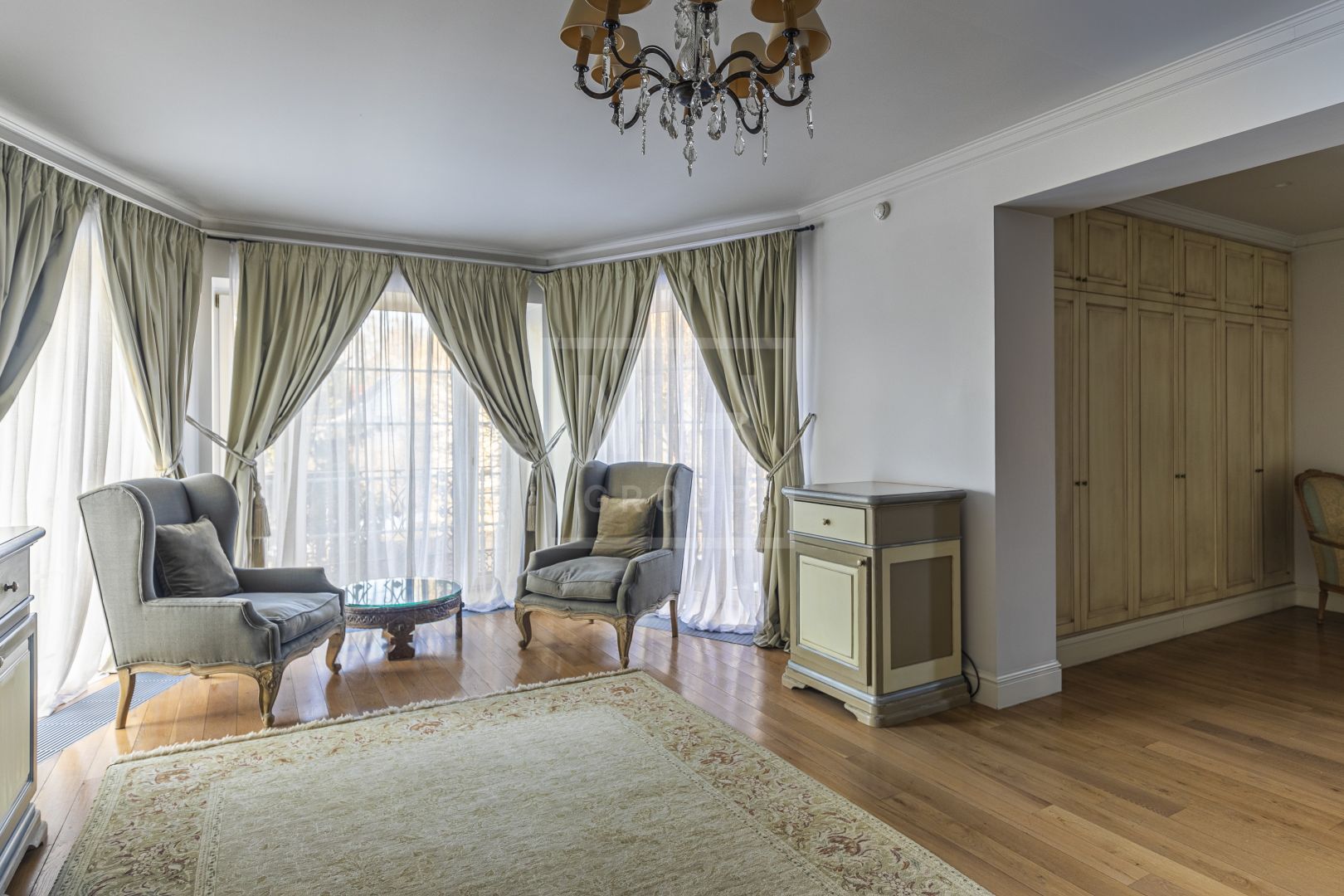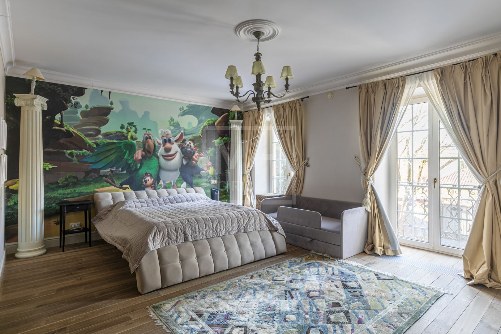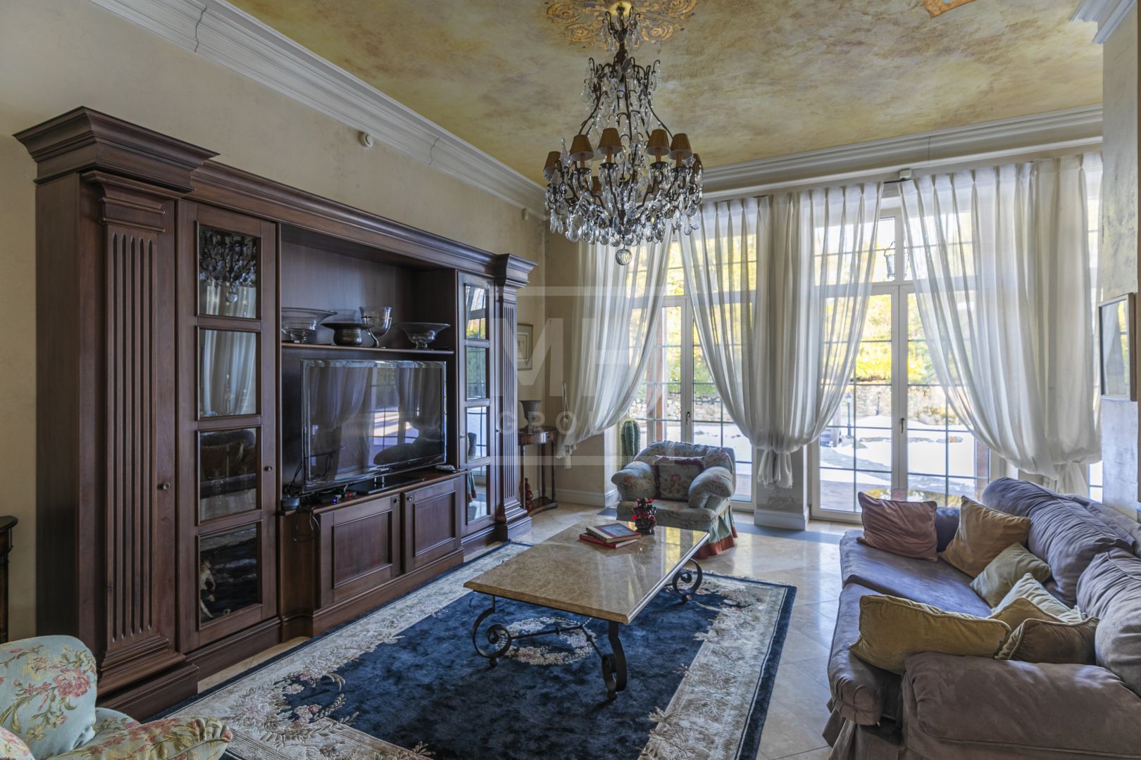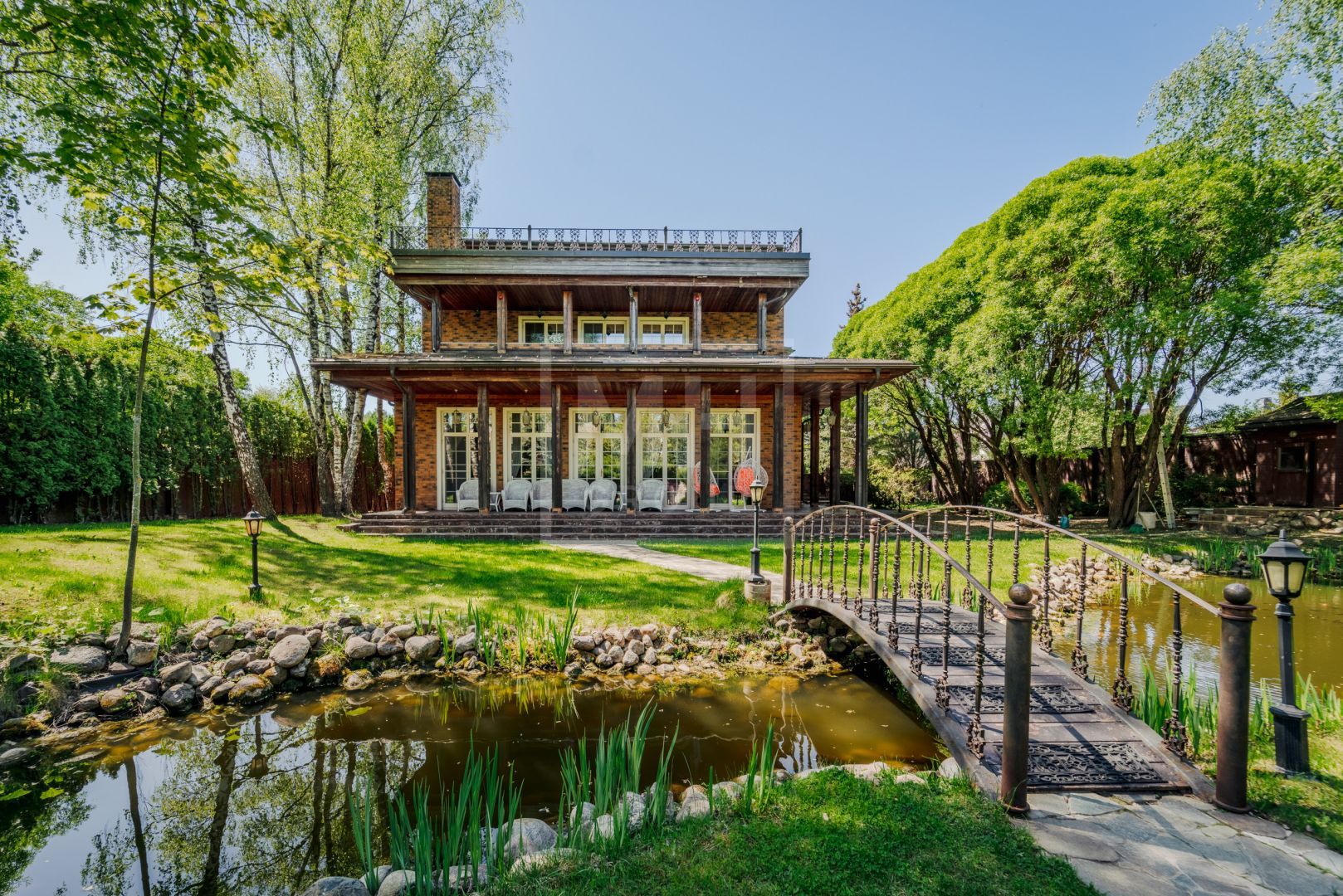 Этот великолепный дом в классическом стиле, и панорамными окнами прекрасно вписан в ландшафт и создает гармонию загородной жизни для всей семьи. Ландшафт участка который создает атмосферу красоты и безмятежности своим прудом и разнообразием больших деревьев дарит единение с природой, позволяет отдохнуть после активного ритма большого города. А близость от центра Москвы, позволит всего за 30-35 минут доехать домой.Внутри дом оформлен в светлых натуральных оттенках, придающих атмосфере теплоту и уют. Каждый уголок дышит гармонией: мягкие кремовые и бежевые тона в сочетании с дизайнерской мебелью от известных брендов подчеркивают изящество и стиль. Мягкие диваны и кресла, элегантные столы из редких пород дерева и тщательно подобранные аксессуары создают идеальное пространство для отдыха и приема гостей.