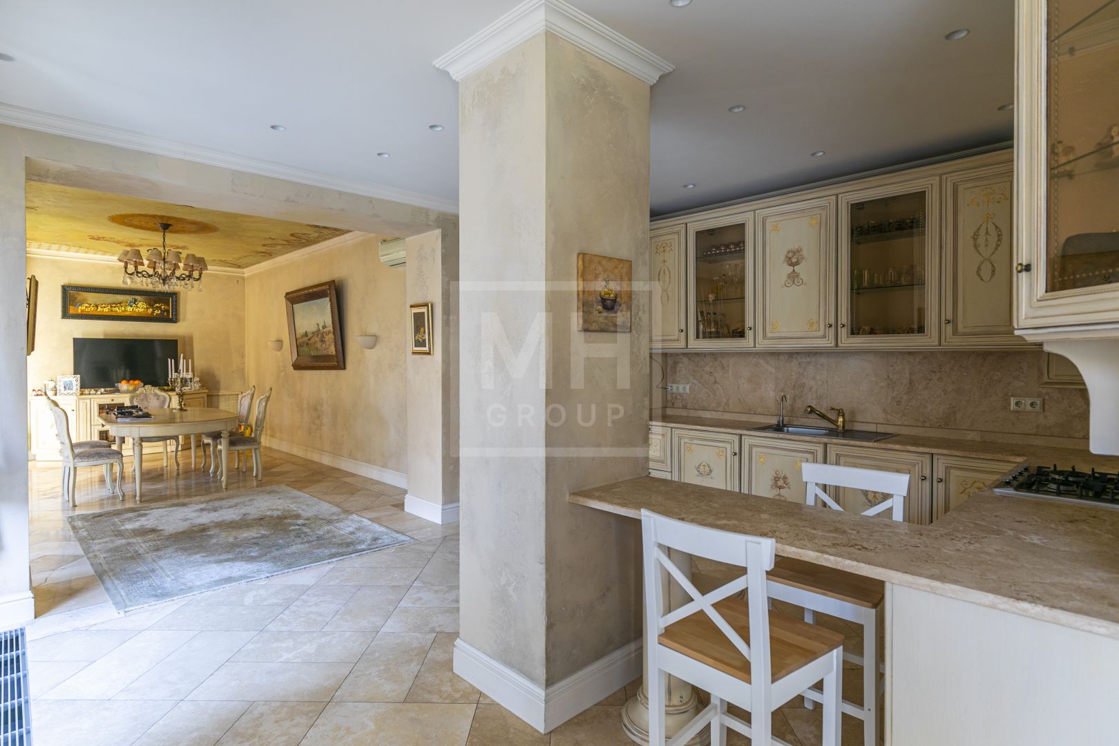 Светлый и просторный кухонный блок, оснащенный современными приборами, идеально подходит для создания кулинарных шедевров. Отдельная столовая, оформленная в итальянском стиле, приглашает за стол, полон великолепных блюд, и теплого общения.