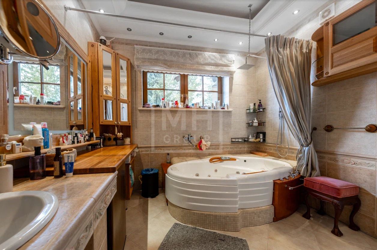 Уютный коттедж, расположенный в стародачном поселке Баковка вблизи города Москвы в 4 км от МКАД, что делает его идеальным для тех, кто хочет жить в уединении, но при этом иметь доступ ко всем преимуществам городской жизни.Дом 650 кв.м построен из высококачественных материалов, выполнен дизайнерский ремонт.