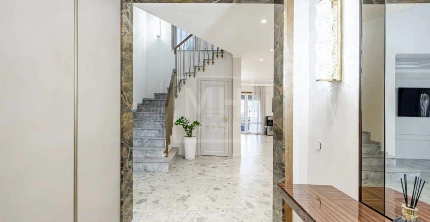 Новый, стильный дом, с изыскано выдержанной архитектурой. Современные внутренние интерьеры. В отделке использованы качественные, селекционные материалы. Поверхность пола выполнена в стиле старинного камня Terrazzo alla veneziana, поверхности стен и потолка обрамлены венецианской штукатуркой и слэбами мрамора Бидасар Грин. Итальянская эксклюзивная мебель, свет, гардеробные, аксессуары, премиальная сантехника V&B, Jacob Delafon, мраморные итальянские ванны Salini L’anima Del’acqua, бытовая премиальная техника SMEG. Система вентиляции. Видеонаблюдение и система контроля и управления доступа . Скоростной интернет.Участок правильной формы с небольшим понижением и полностью выполненным ландшафтом. Правильная посадка дома в самой верхней точке участка открывает прекрасные виды из основных помещений. Кроме основного дома на участке размещены гостевой дом и беседка с зоной барбекю.