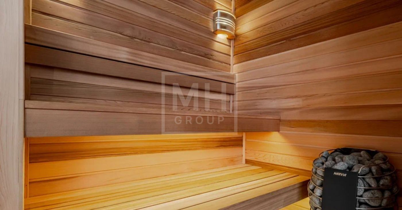 Этаж 2: Мастер-спальня с с/у, гардеробной и сауной из канадского кедра, спальня с с/у, 2 спальни с выходом на террасную зону, с/у, гардеробная