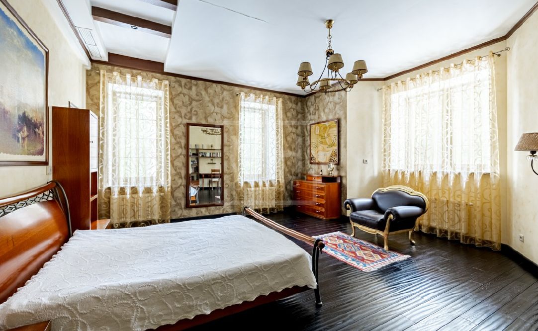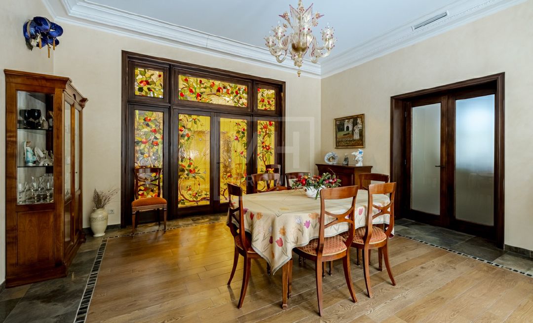 Великолепный особняк "под ключ" на большом лесном участке Грибово. Элегантный и сдержанный интерьер с элементами английской классики и прованса. Исключительно премиальные материалы (природный камень, дерево), встроенная бытовая техника на кухне известных брендов. На участке растут реликтовые хвойные деревья, есть дом для персонала, крытая беседка с BBQ, подведенными коммуникациями.