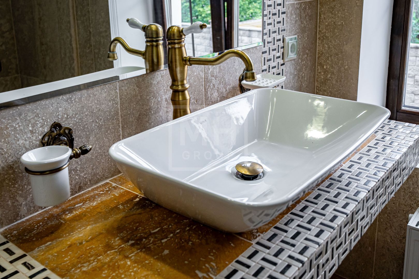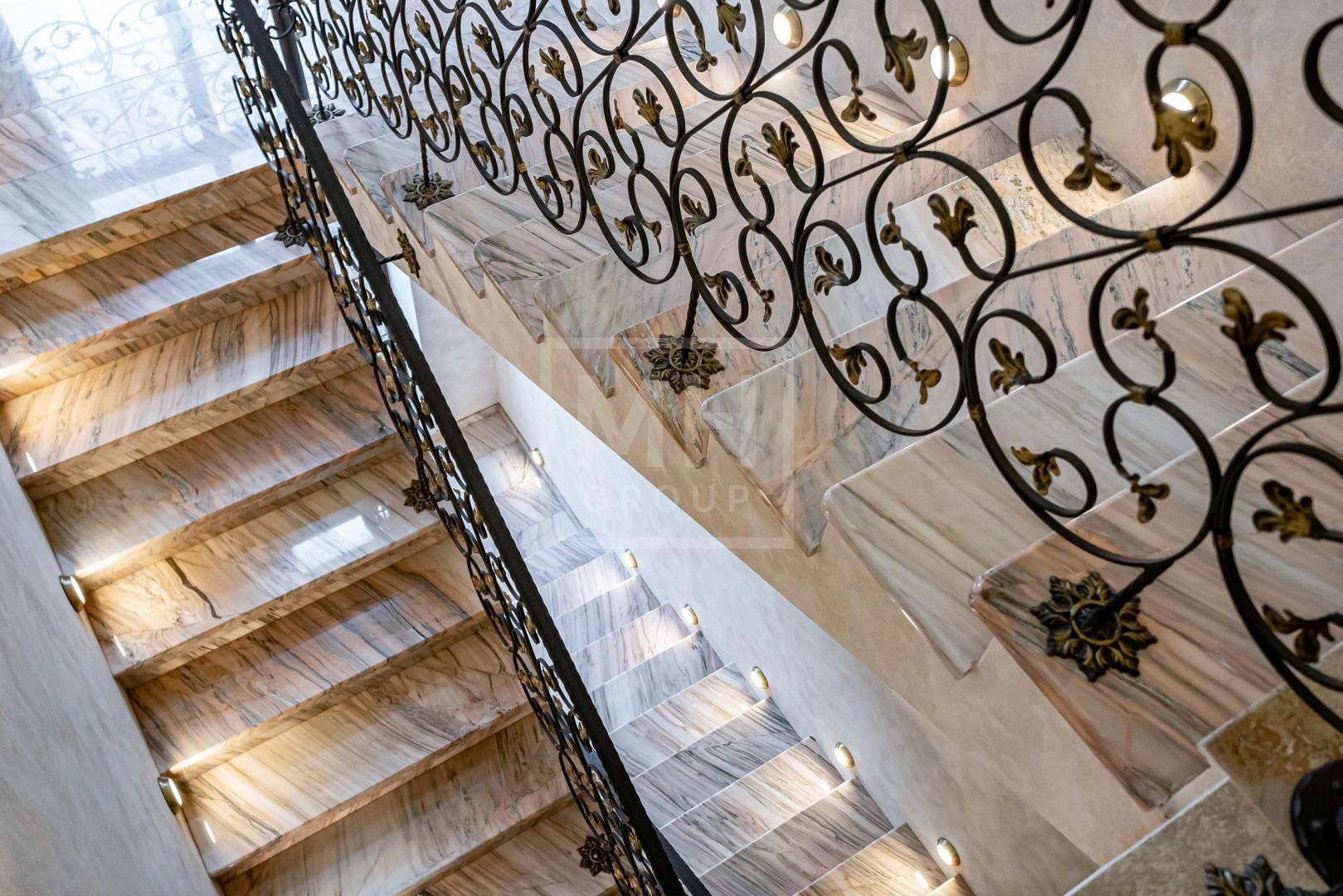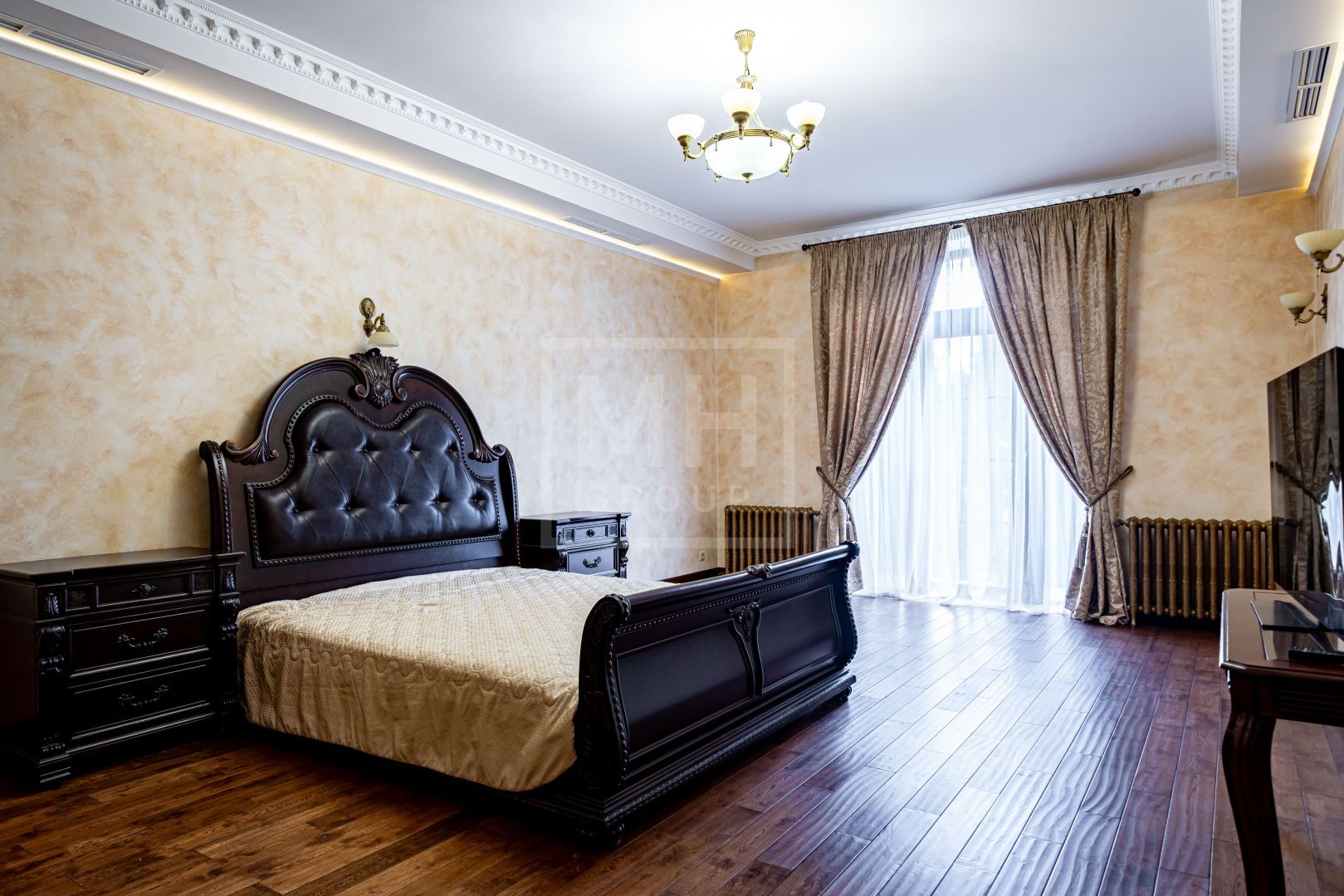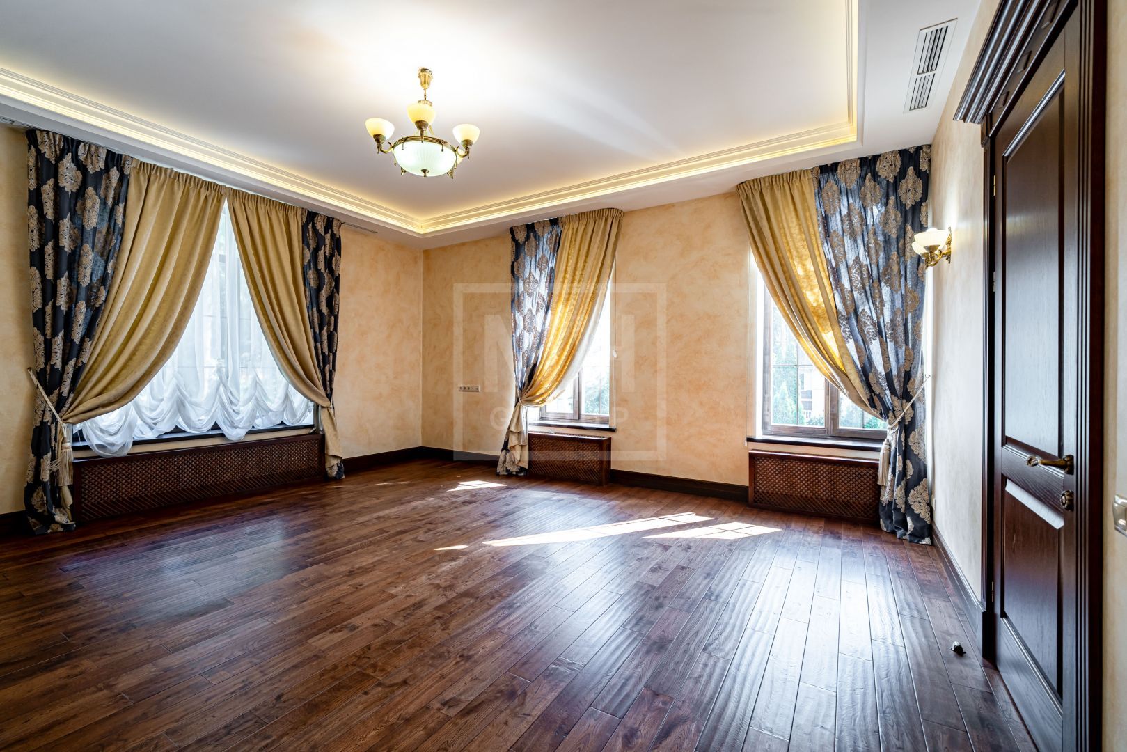 На просторном лесном участке с корабельными соснами располагается дом со SPA- комплексом и бассейном 25 метров.Дом построен из кирпича, в отделке использованы натуральные материалы, такие как травертин, дерево благородных пород, розовый мрамор, стены покрыты венецианской штукатуркой. Кухня оборудована бытовой техникой Bosch, Kuppersbusch, Miele, Liebherr.