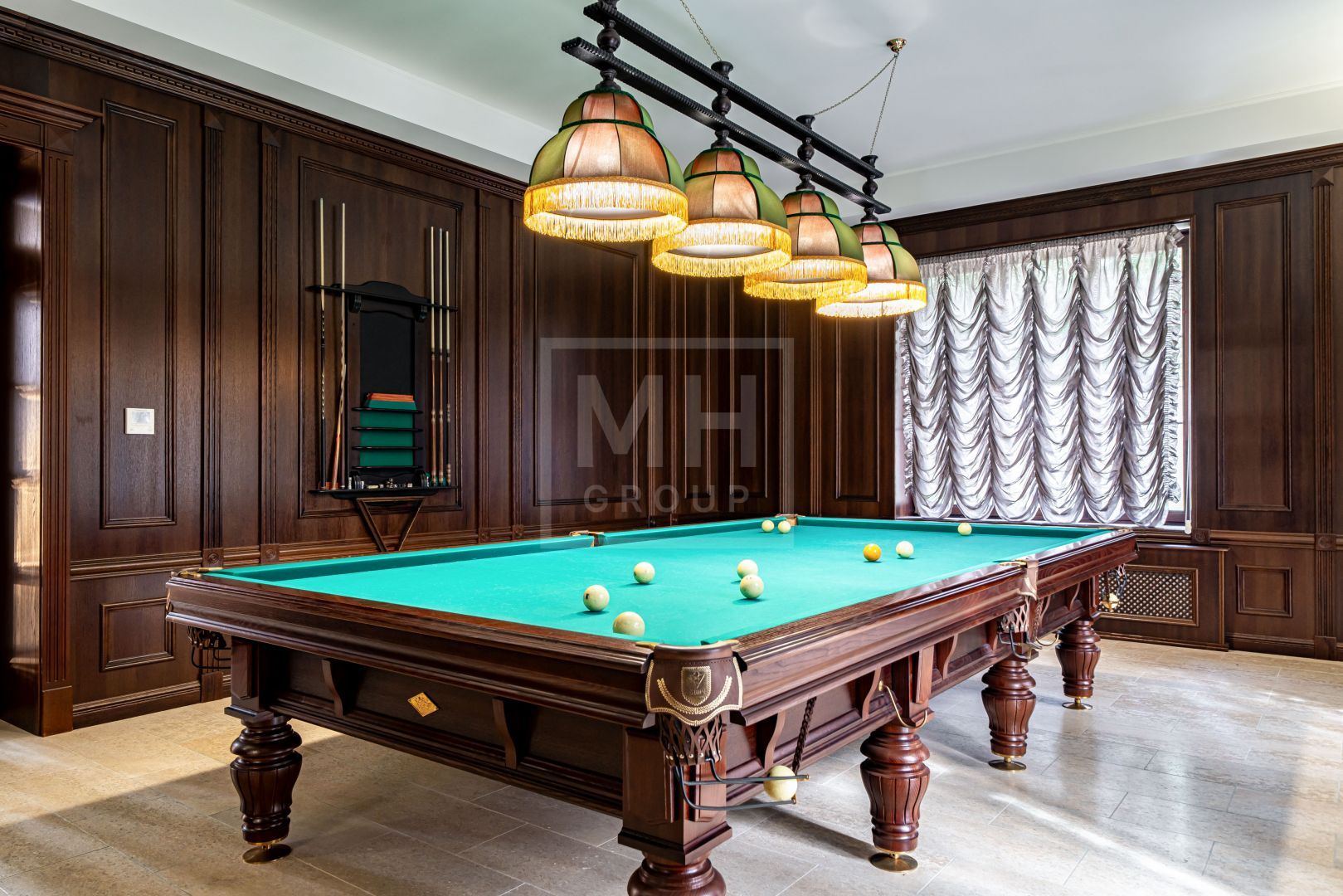 Этаж 1: прихожая, холл, гардеробная, с/у, кухня- столовая, биллиардная (можно переоборудовать в гостиную), спа-зона: бассейн, хаммам, сауна, джакузи, с/у, гардеробная, массажная