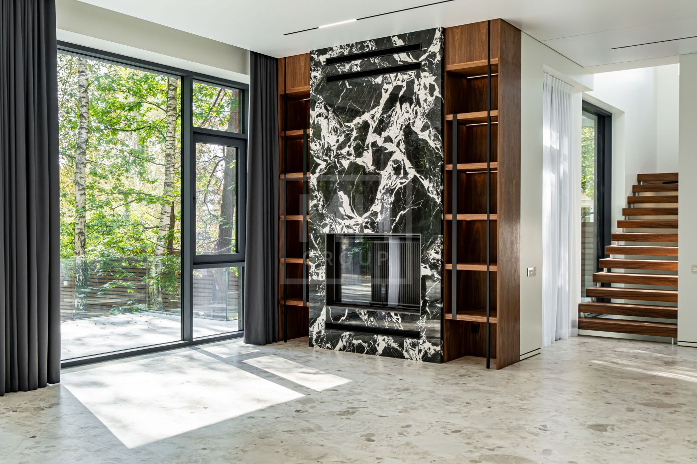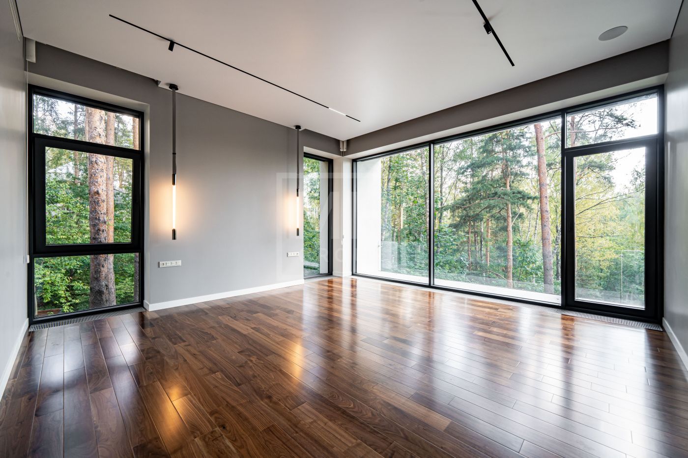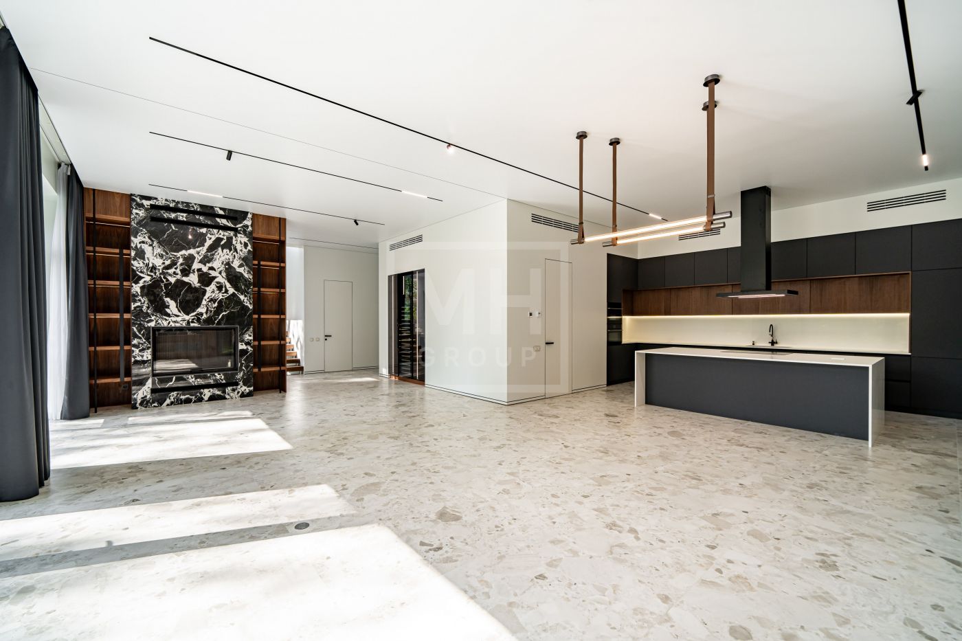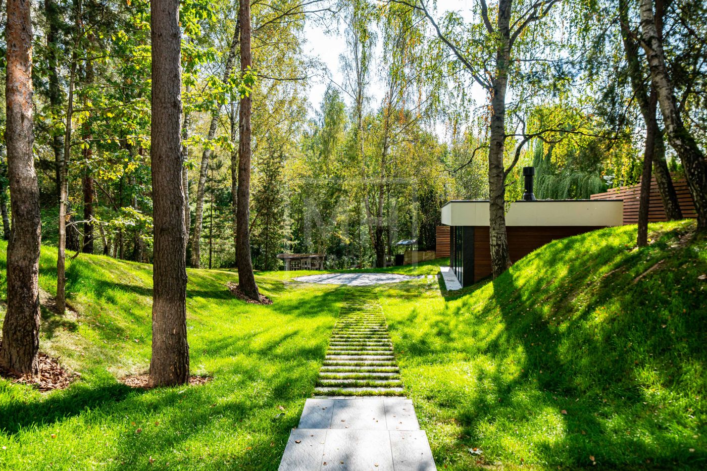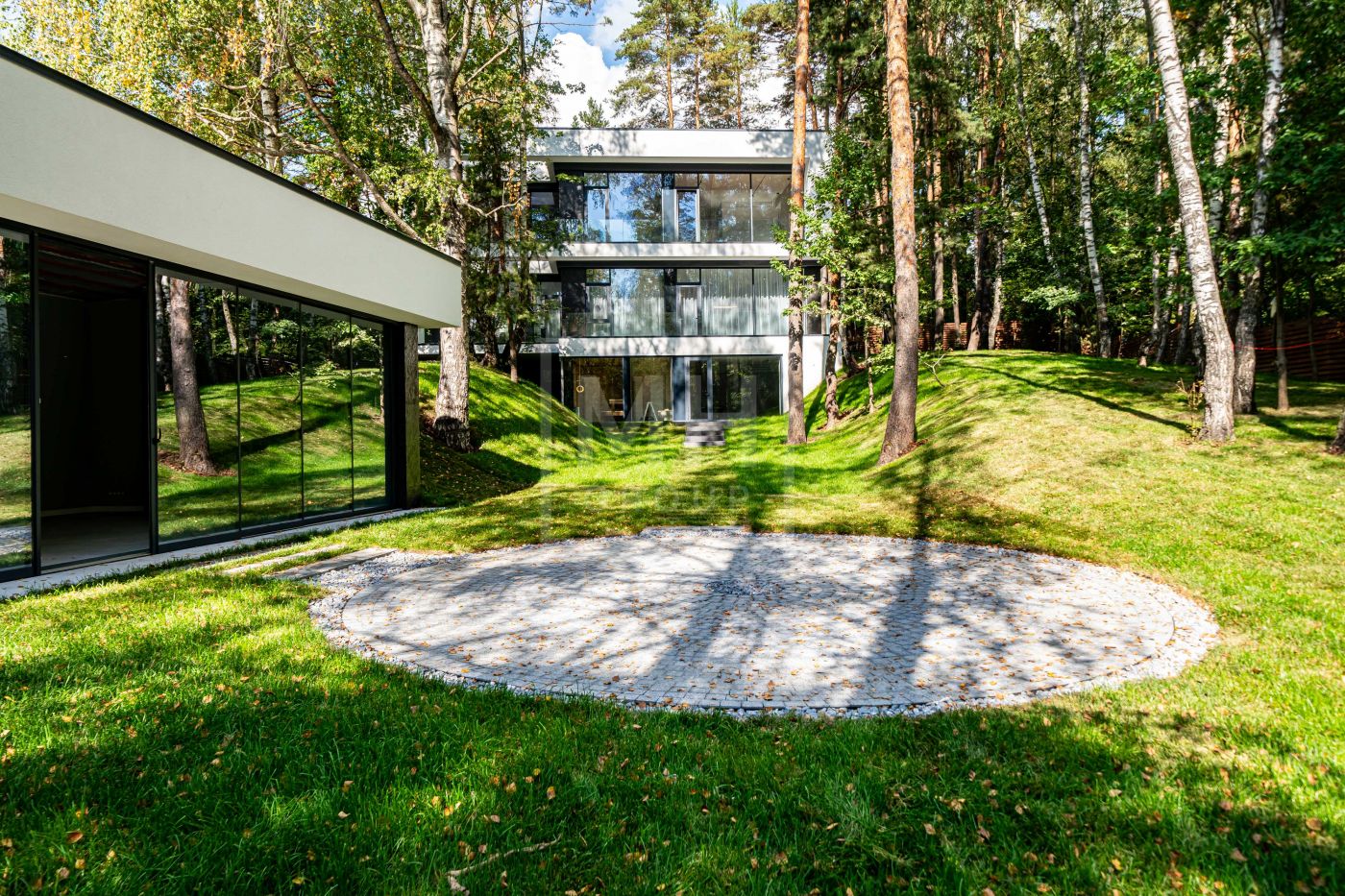 Новый современный дом на уникальном рельефном лесном участке на охраняемой территории в районе поселка Павлово на Новорижском шоссе. Фасад комбинированный с элементами керамогранита, дерева и штукатурки. Отделка в доме выполнена из качественных дорогостоящих материалов в светлых и сдержанных тонах. Панорамное остекление, высокие потолки делают его невероятно светлым. Из основных помещений предусмотрены выходы на террасы, с которых открывается потрясающий вид на участок и естественный природный ландшафт. Планировкой предусмотрено 3 спальни со своими с/у и гардеробными, просторная зона кухни-столовой-гостиной, спа-зона с комнатой отдыха, сауной, душевой и с/у, помещения для персонала с отдельным входом, навес для автомобилей. Редкий по своей естественной красоте участок правильной формы с перепадом высот и вековыми соснами. Кроме основного дома на территории расположена отапливаемая большая беседка с возможностью размещения зоны барбекю.