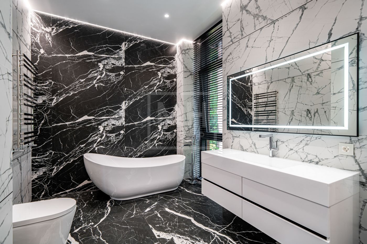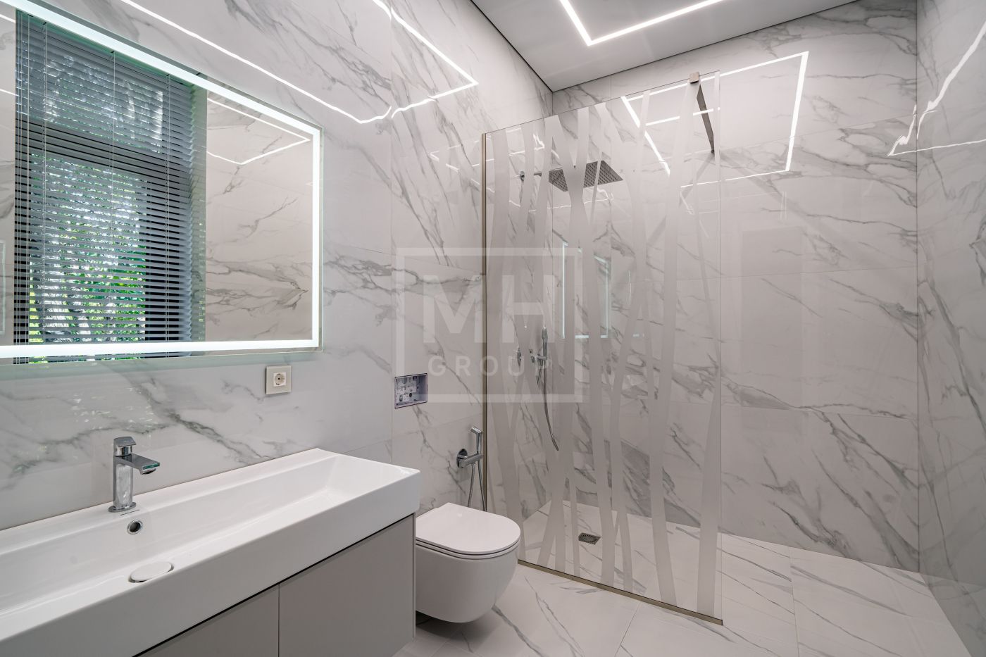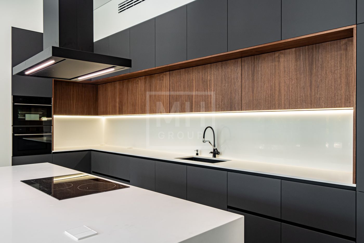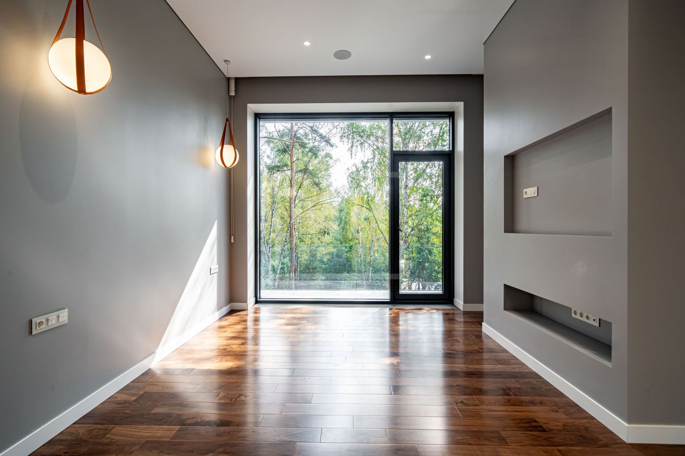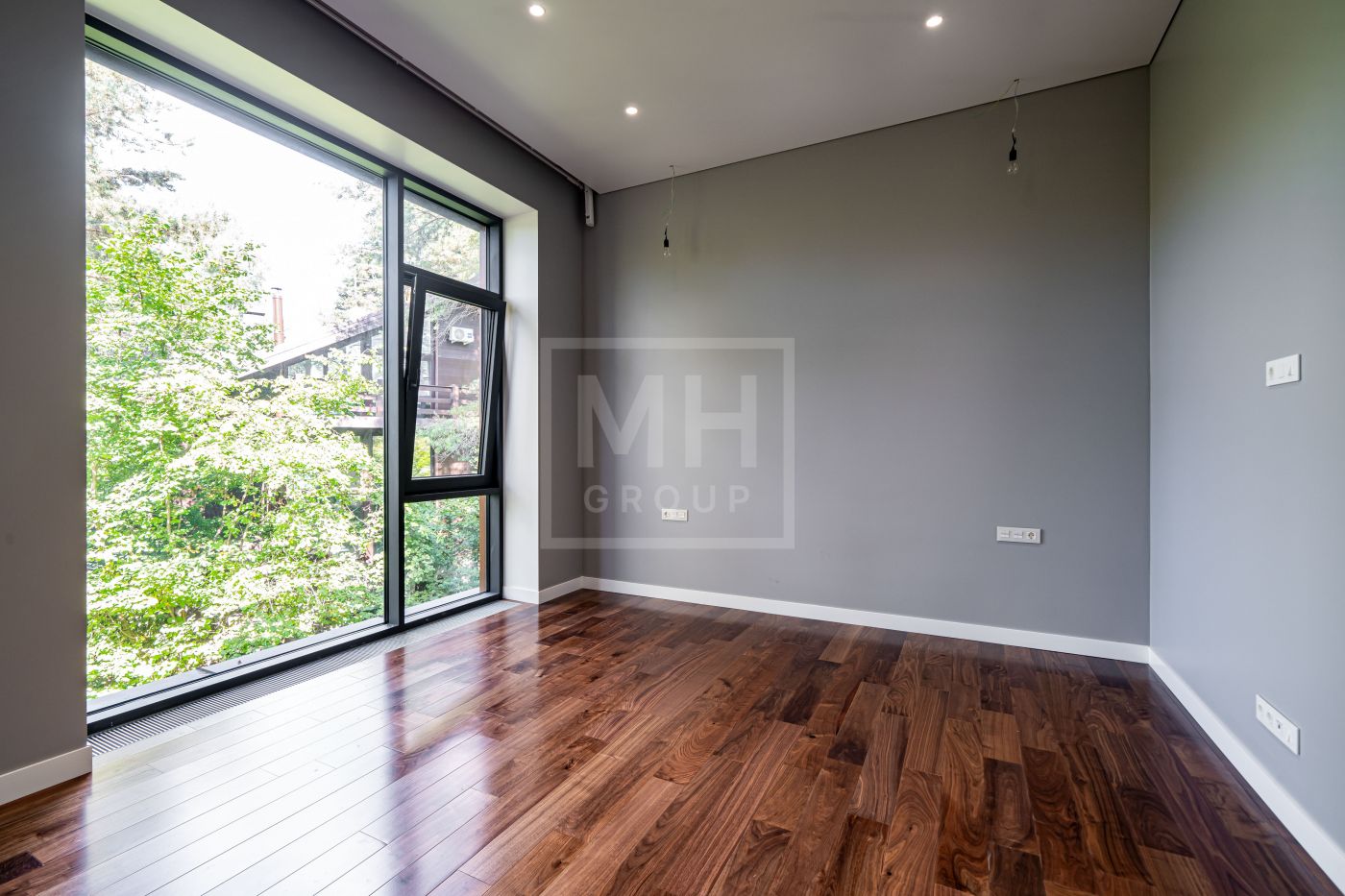 Новый современный дом на уникальном рельефном лесном участке на охраняемой территории в районе поселка Павлово на Новорижском шоссе. Фасад комбинированный с элементами керамогранита, дерева и штукатурки. Отделка в доме выполнена из качественных дорогостоящих материалов в светлых и сдержанных тонах. Панорамное остекление, высокие потолки делают его невероятно светлым. Из основных помещений предусмотрены выходы на террасы, с которых открывается потрясающий вид на участок и естественный природный ландшафт. Планировкой предусмотрено 3 спальни со своими с/у и гардеробными, просторная зона кухни-столовой-гостиной, спа-зона с комнатой отдыха, сауной, душевой и с/у, помещения для персонала с отдельным входом, навес для автомобилей. Редкий по своей естественной красоте участок правильной формы с перепадом высот и вековыми соснами. Кроме основного дома на территории расположена отапливаемая большая беседка с возможностью размещения зоны барбекю.