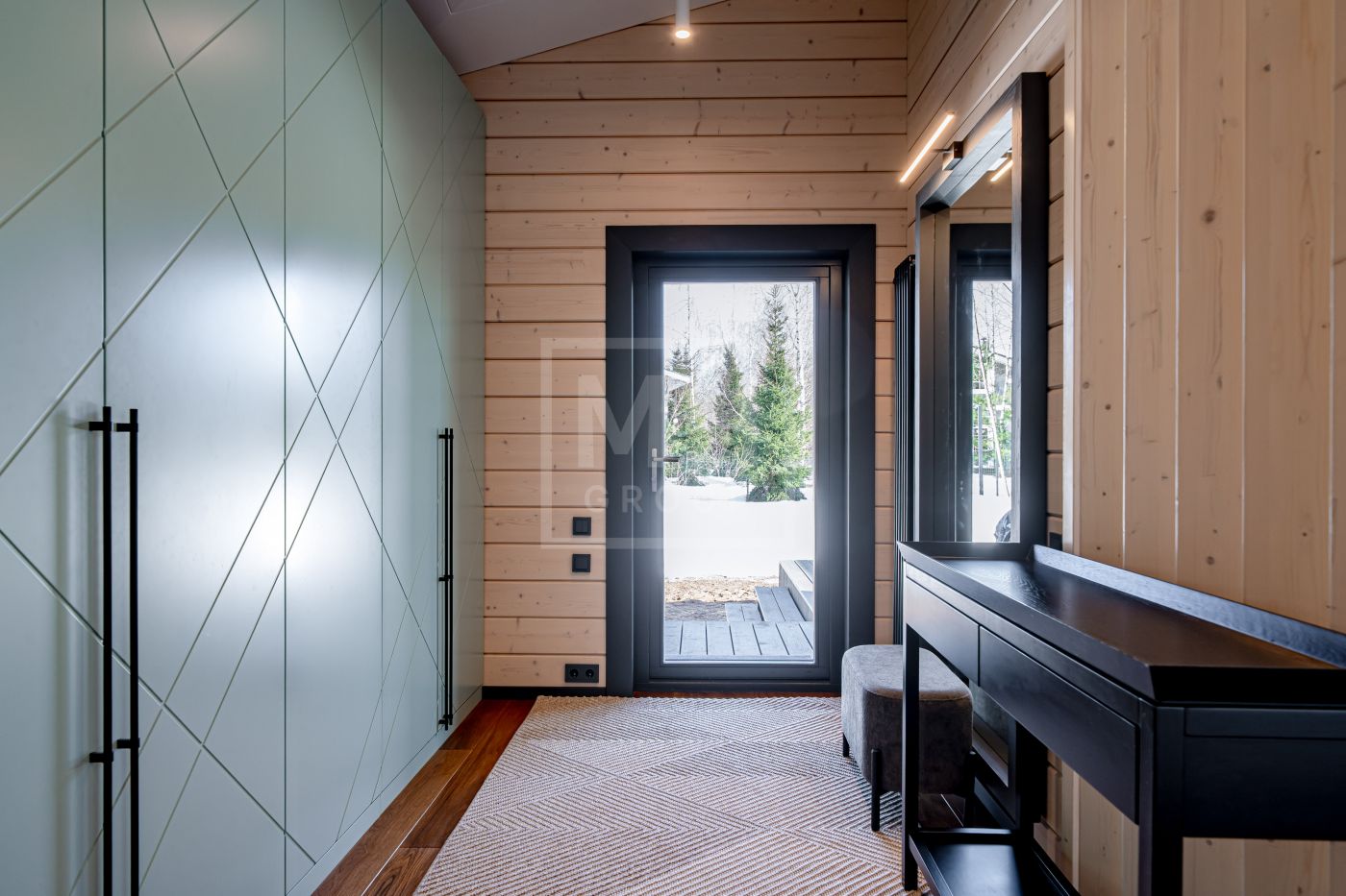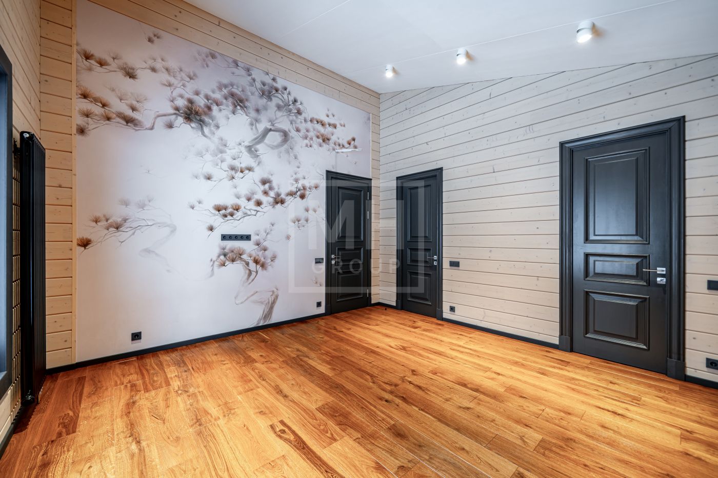 Новый одноэтажный дом из клеёного бруса построен с соблюдением высоких стандартов качества и учитывая все тонкости деревянного домостроения. В интерьере гармонично сочетаются уют, создаваемый деревом и стильный минимализм современной мебели от ведущих мировых производителей. Отделка дома выполнена в спокойной цветовой гамме, фрески на стенах придают дому дополнительную легкость и изящность.