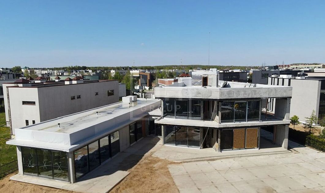 Современный дом в стадии "без отделки" в коттеджном поселке "Резиденции Берёзки". Дом выполнен по индивидуальному проекту, имеет продуманную планировку и панорамное остекление фирмы Schuco.