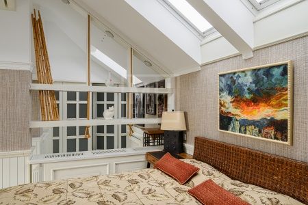 Мансарда: студия с кухней, спальней, с/у и гардеробной.