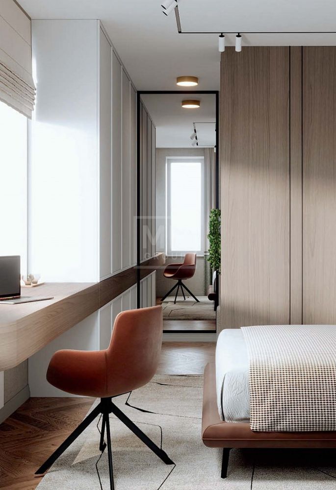 Этаж 2: расположен мастер-блок общей площадью почти 50 метров: спальня, ванная, гардероб и даже свой балкон. Также на этом этаже еще 2 спальни, санузел и функциональная постирочная.