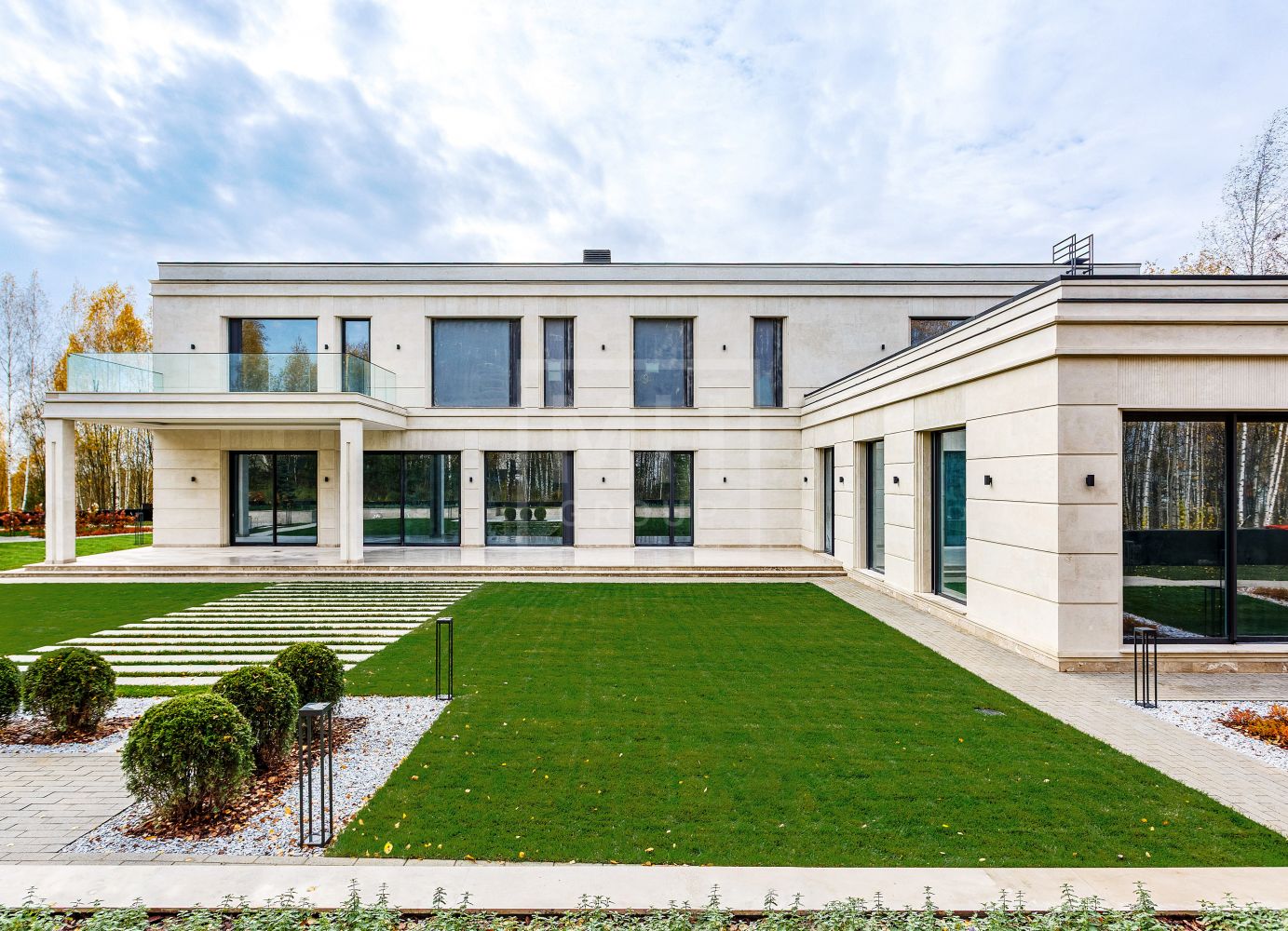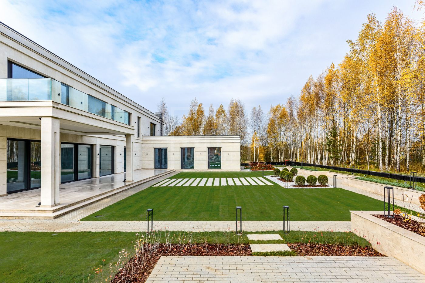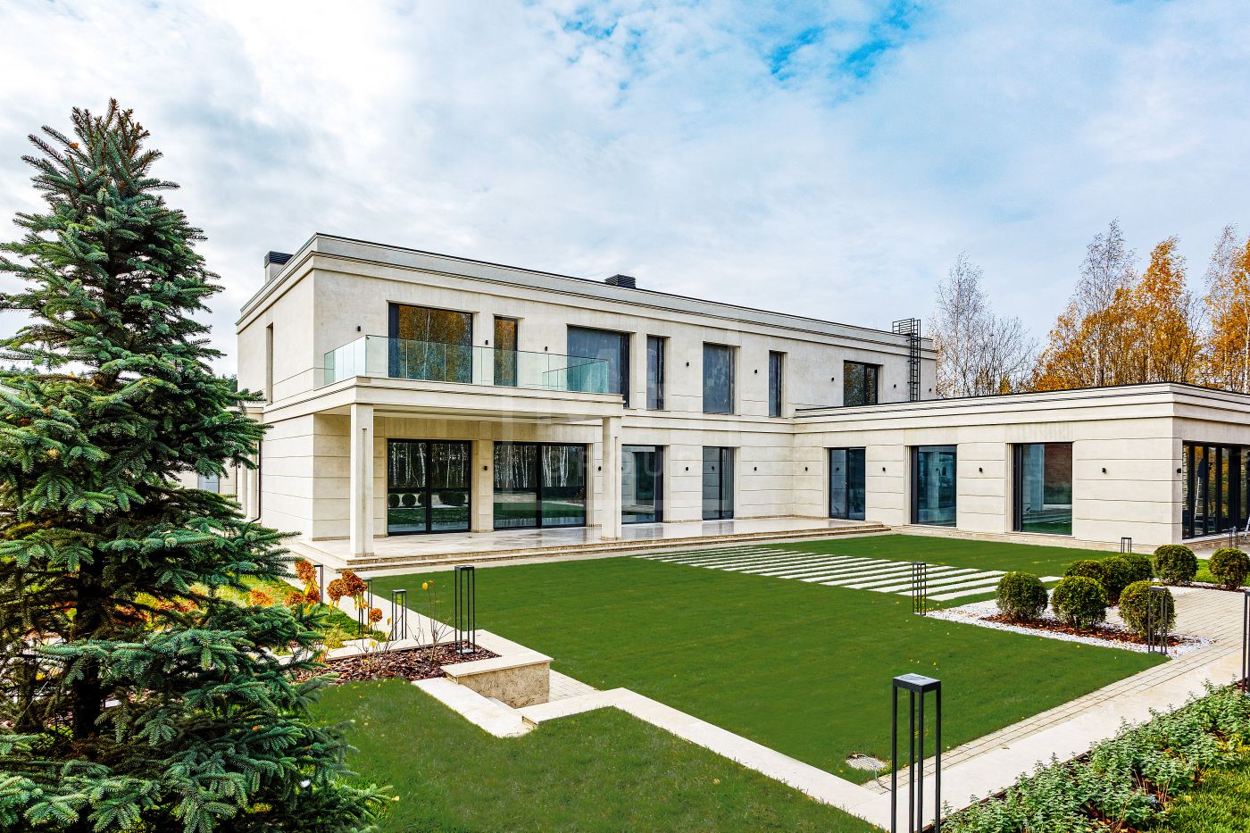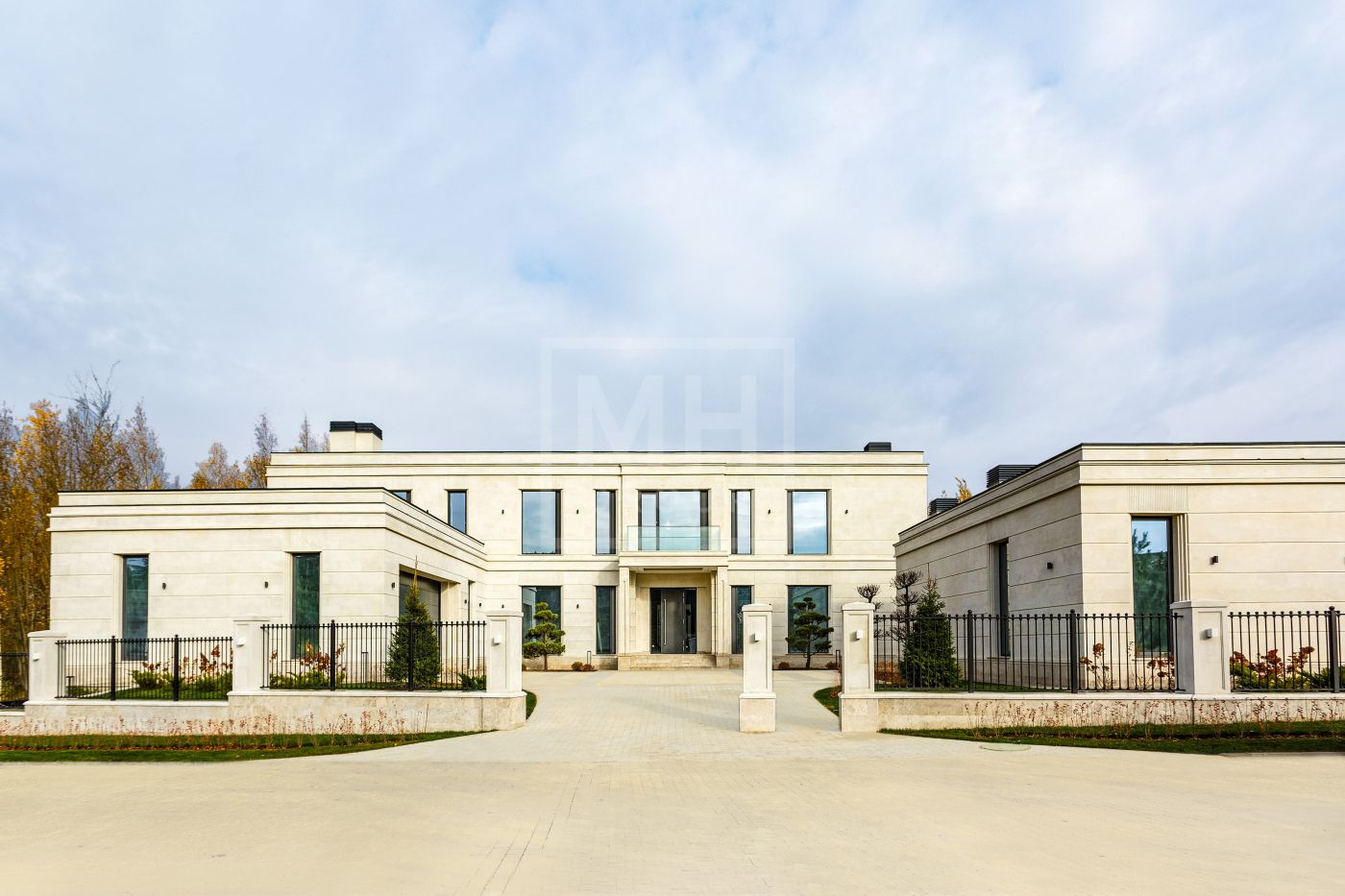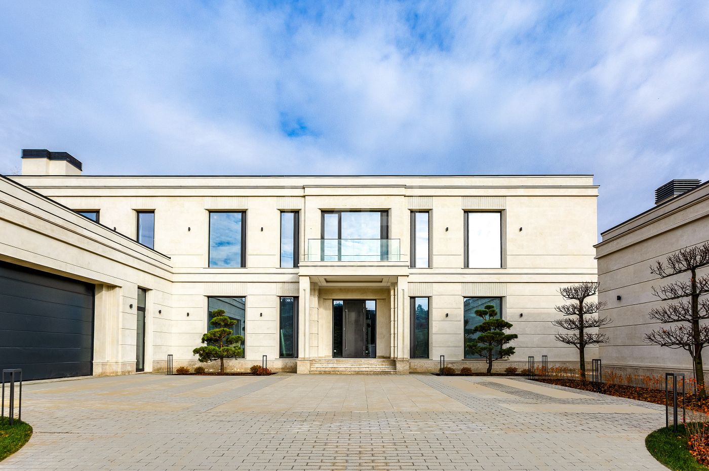 Резиденция под финишную отделку. Основное строение площадью 1500м2 и дом для персонала 85м2. Фасад облицован светлым селекционным натуральным известняком, терраса и крыльцо -доломитом. Окна от немецкого бренда Schuco. Высота потолков на 1 этаже 3,8м, на 2 этаже 3,6м. Камфорные планировочные решения: 5 спален ( можно сделать 6), есть дополнительная рабочая кухня, просторная СПА зона с бассейном. Все инженерные коммуникации проведены и подключены, террасы и крыльцо с подогревом, котельная Wolf, центральное кондиционирование, вентиляция, увлажнение, система Умный дом. Смонтированы инсталляции в зонах ванных комнат от брендов Antonio Luppi, Fantini,Gessi.На участке полностью выполнены ландшафтные работы: автополив, освещение, мощение, газон, высажены крупномеры.