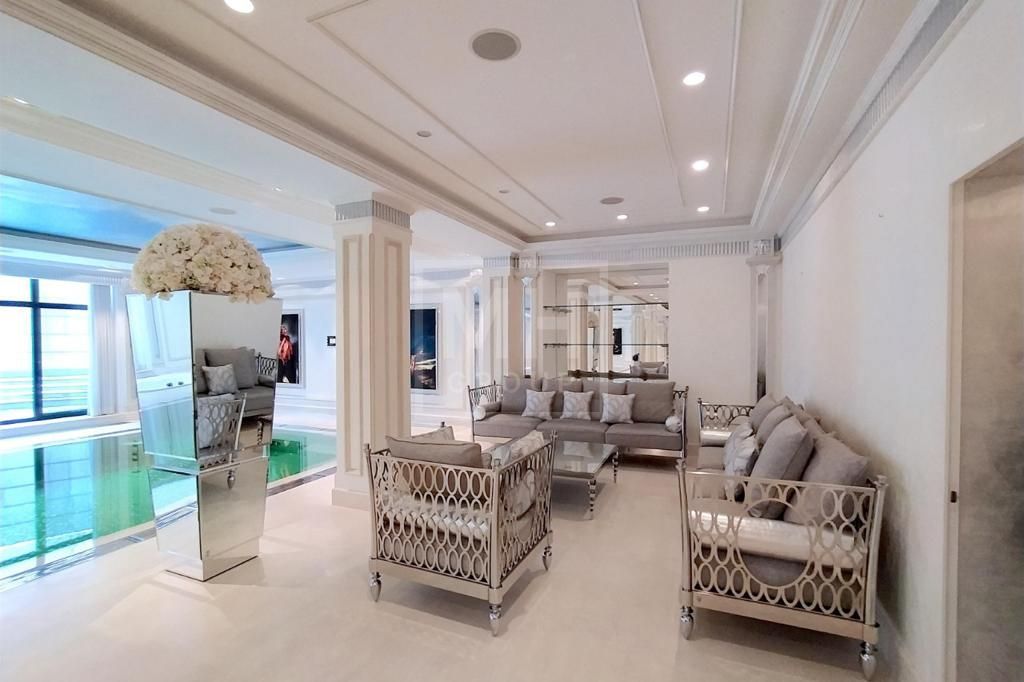 Эксклюзивный дизайн дома создан под заказ, меблирован Ralph Lauren. Дорогой свет, текстиль и сантехника, а также система Умный дом, современная инженерия и система охраны и видеонаблюдения. Высота потолков 3,7 метра. Отдельно на участке построен гараж с квартирой для персонала. Для отдыха: спа-зона с бассейном и двумя саунами, есть тренажерный зал и домашний кинотеатр.