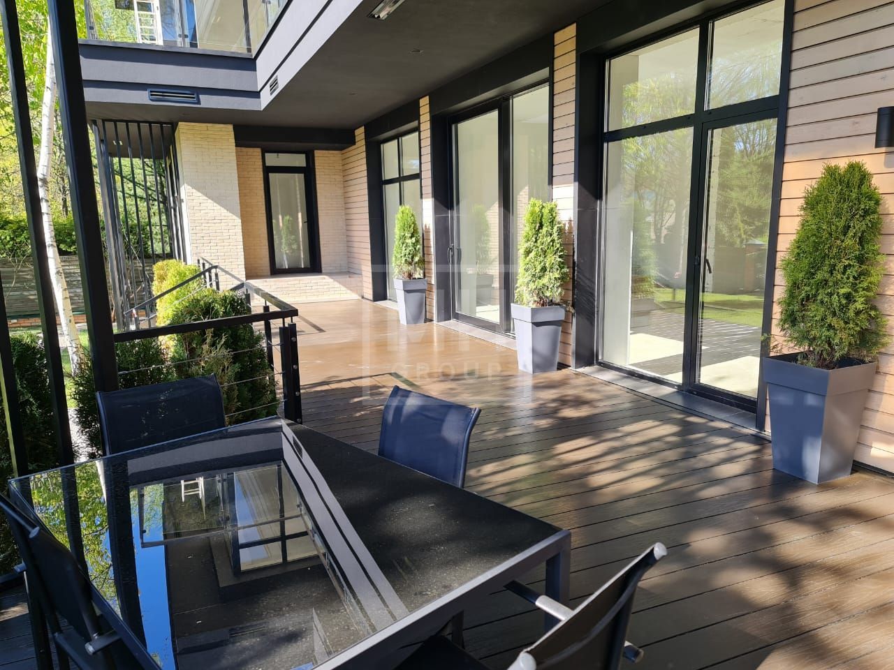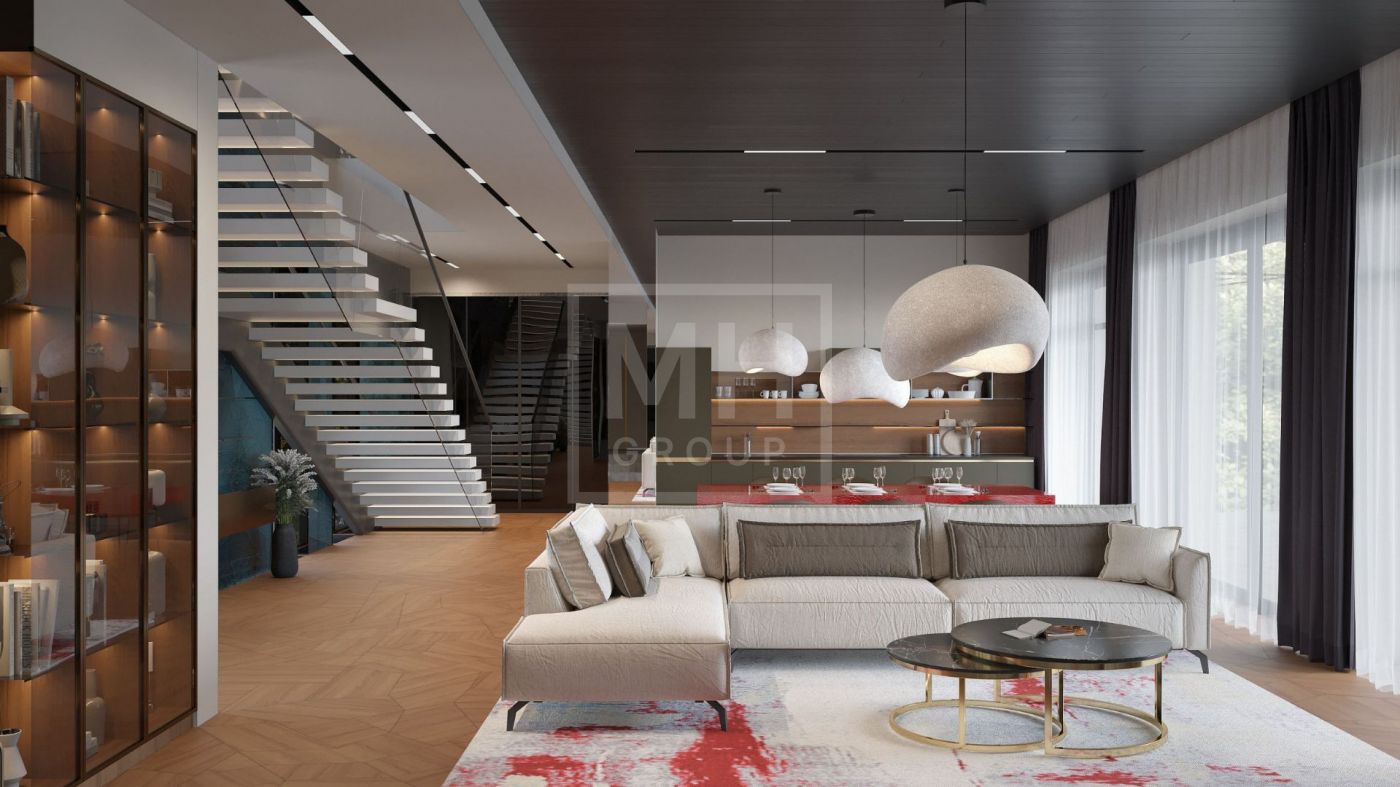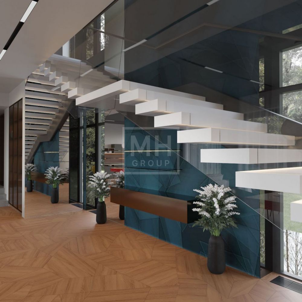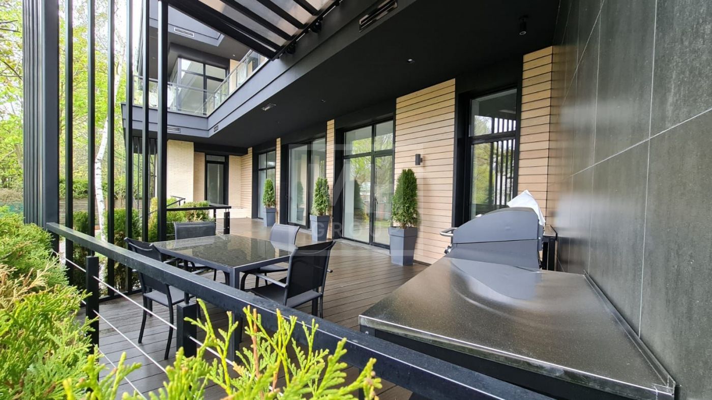 Дом в современном стиле, с удобной современной планировкой предлагается потенциальным покупателям в состоянии "под отделку". Панорамное остекление, терраса и балкон открывают красивые виды на лесные массивы. Удобная планировка позволяет адаптировать дом "под себя" и выделить под спальни от 3 до 5 комнат со своими ванными и гардеробными, при желании зону СПА можно переместить в цокольный этаж или на эксплуатируемую кровлю. На первом этаже более 100 м2 выделено под основную кухню, столовую и гостиную с камином и выходом на террасу, к основной кухне примыкает рабочая кухня. В доме предусмотрены обширные зоны хранения: 3 кладовых, 9 гардеробных, постирочная и бельевая. В цокольном этаже располагается блок для персонала и котельная, в которые предусмотрен отдельных приватный вход. На участке выполнен ландшафтный дизайн: дорожки, подсветка, газон, сохранены взрослые плодовые и декоративные деревья. Выделено место под дополнительный навес или гараж на 2 автомобиля.