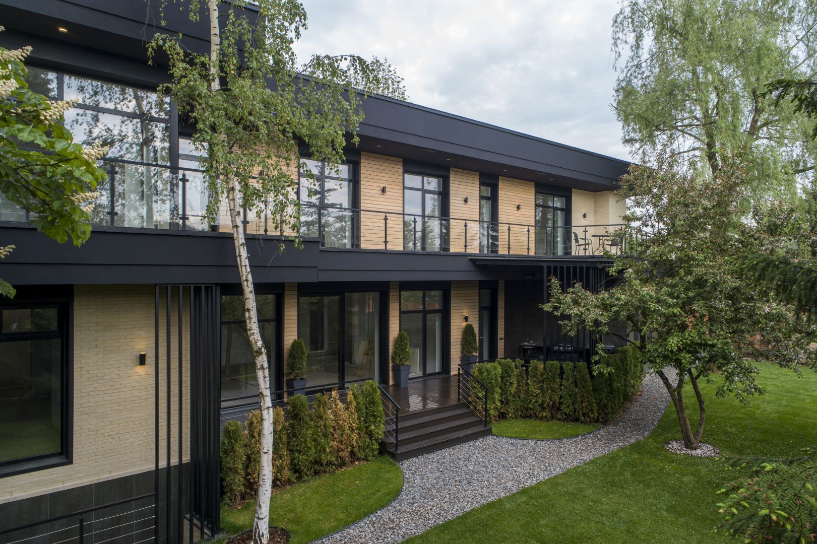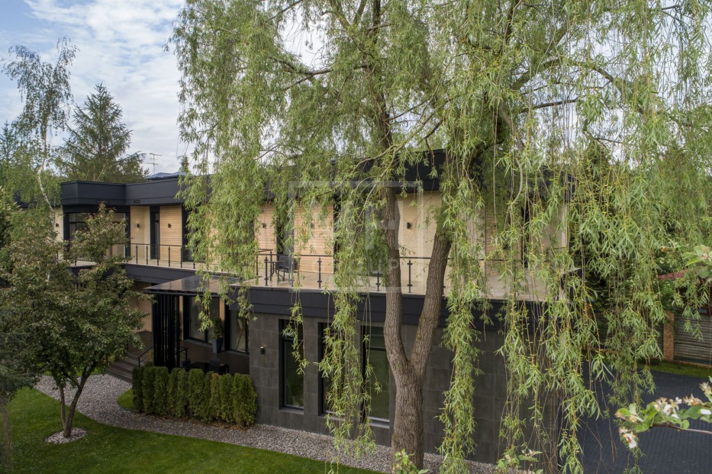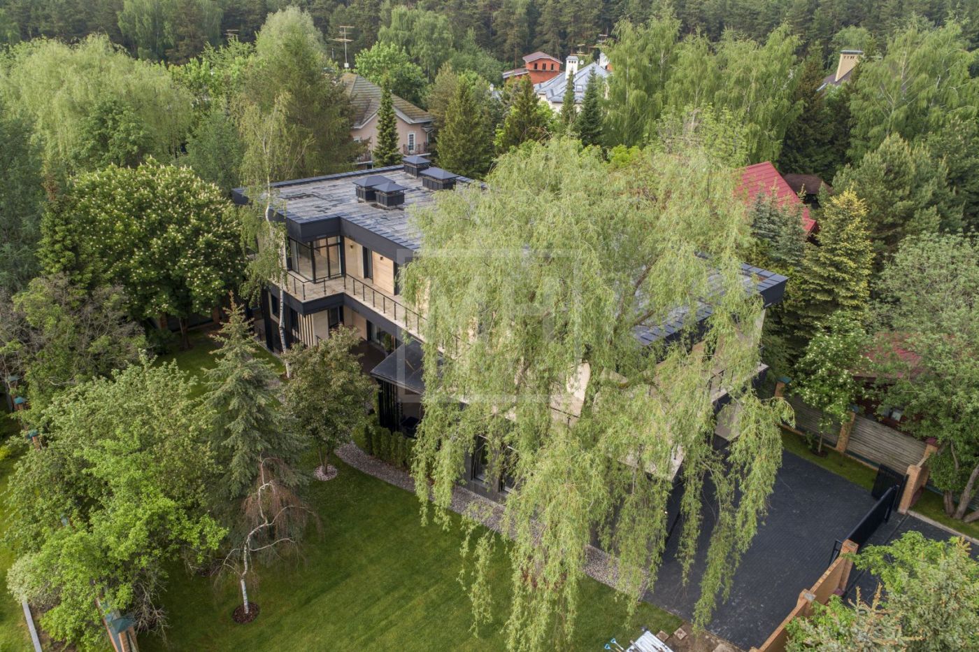 Дом в современном стиле, с удобной современной планировкой предлагается потенциальным покупателям в состоянии "под отделку". Панорамное остекление, терраса и балкон открывают красивые виды на лесные массивы. Удобная планировка позволяет адаптировать дом "под себя" и выделить под спальни от 3 до 5 комнат со своими ванными и гардеробными, при желании зону СПА можно переместить в цокольный этаж или на эксплуатируемую кровлю. На первом этаже более 100 м2 выделено под основную кухню, столовую и гостиную с камином и выходом на террасу, к основной кухне примыкает рабочая кухня. В доме предусмотрены обширные зоны хранения: 3 кладовых, 9 гардеробных, постирочная и бельевая. В цокольном этаже располагается блок для персонала и котельная, в которые предусмотрен отдельных приватный вход. На участке выполнен ландшафтный дизайн: дорожки, подсветка, газон, сохранены взрослые плодовые и декоративные деревья. Выделено место под дополнительный навес или гараж на 2 автомобиля.