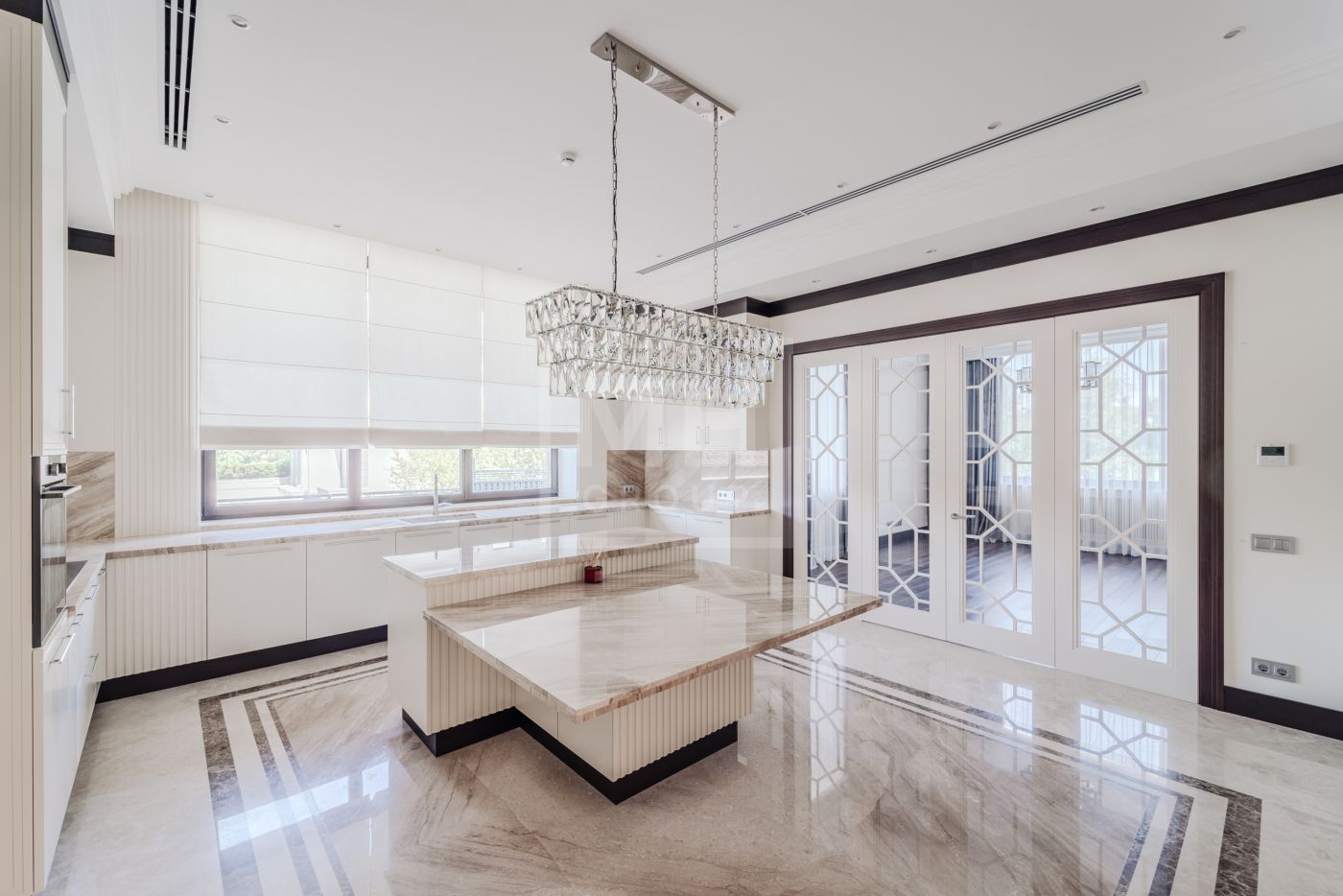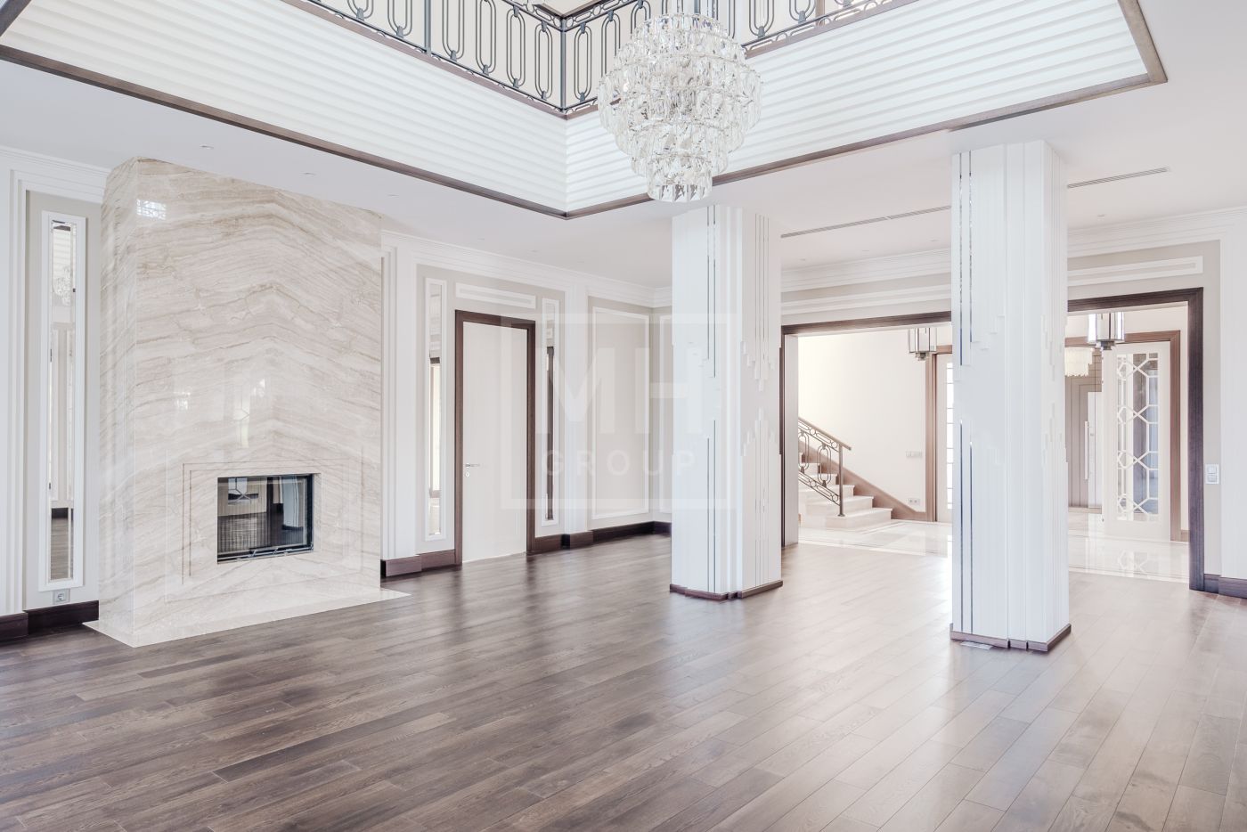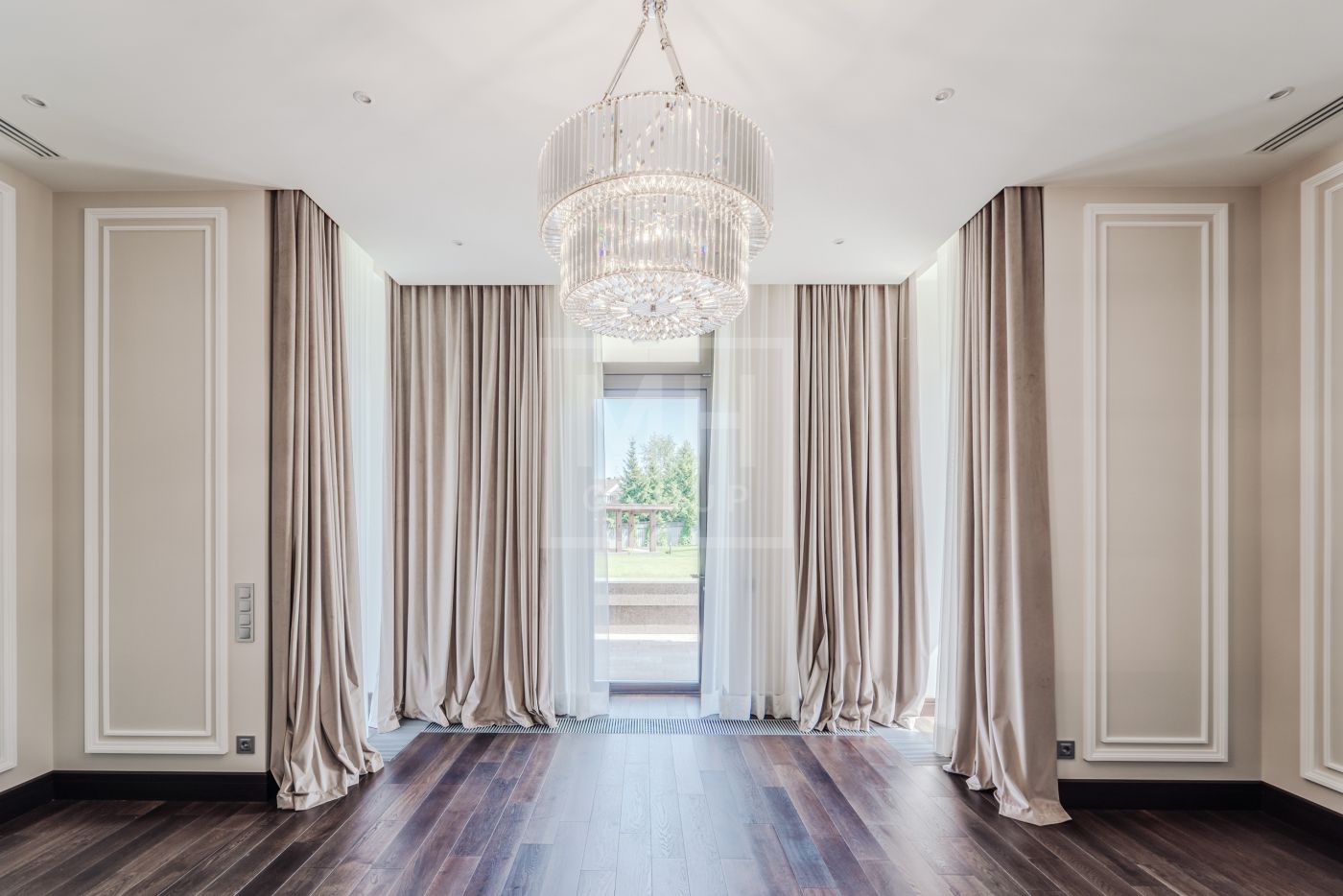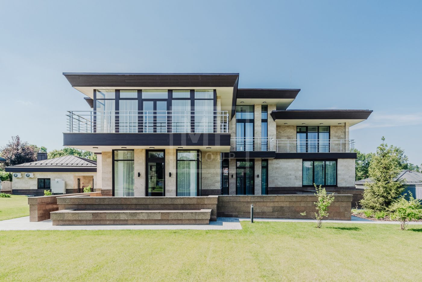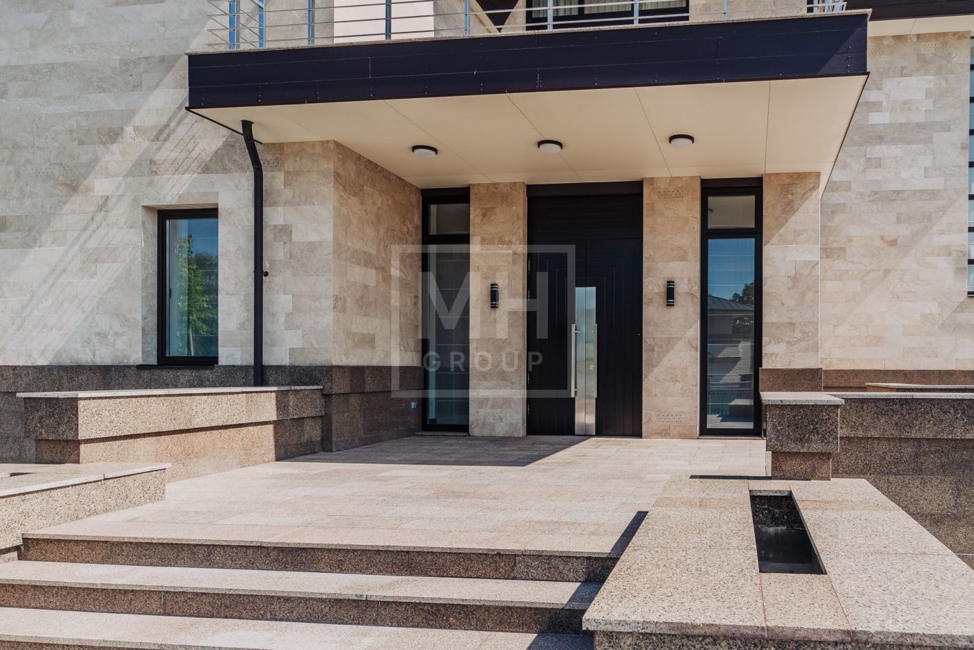 Новый дом с отделкой под ключ, выполнен в современном ар-деко, что придало интерьеру уверенного композиционного прочтения мейнстрима "Олд мани". Фактурные колонны, огромные зеркала, распашные двери с орнаментом, второй свет в гостиной, натуральные дерево и камень, хрустальные люстры нарочито больших размеров и т.д. Основная цветовая гамма контраст белого или кремового с венге. Продуманная, комфортная планировка оставит приятное впечатление.В отдельное одноэтажное строение вынесены второстепенные помещения: гараж на 3 авто, блок для персонала, кладовые и котельная.