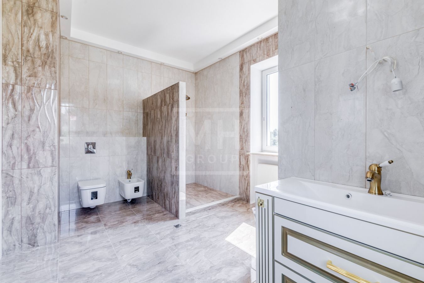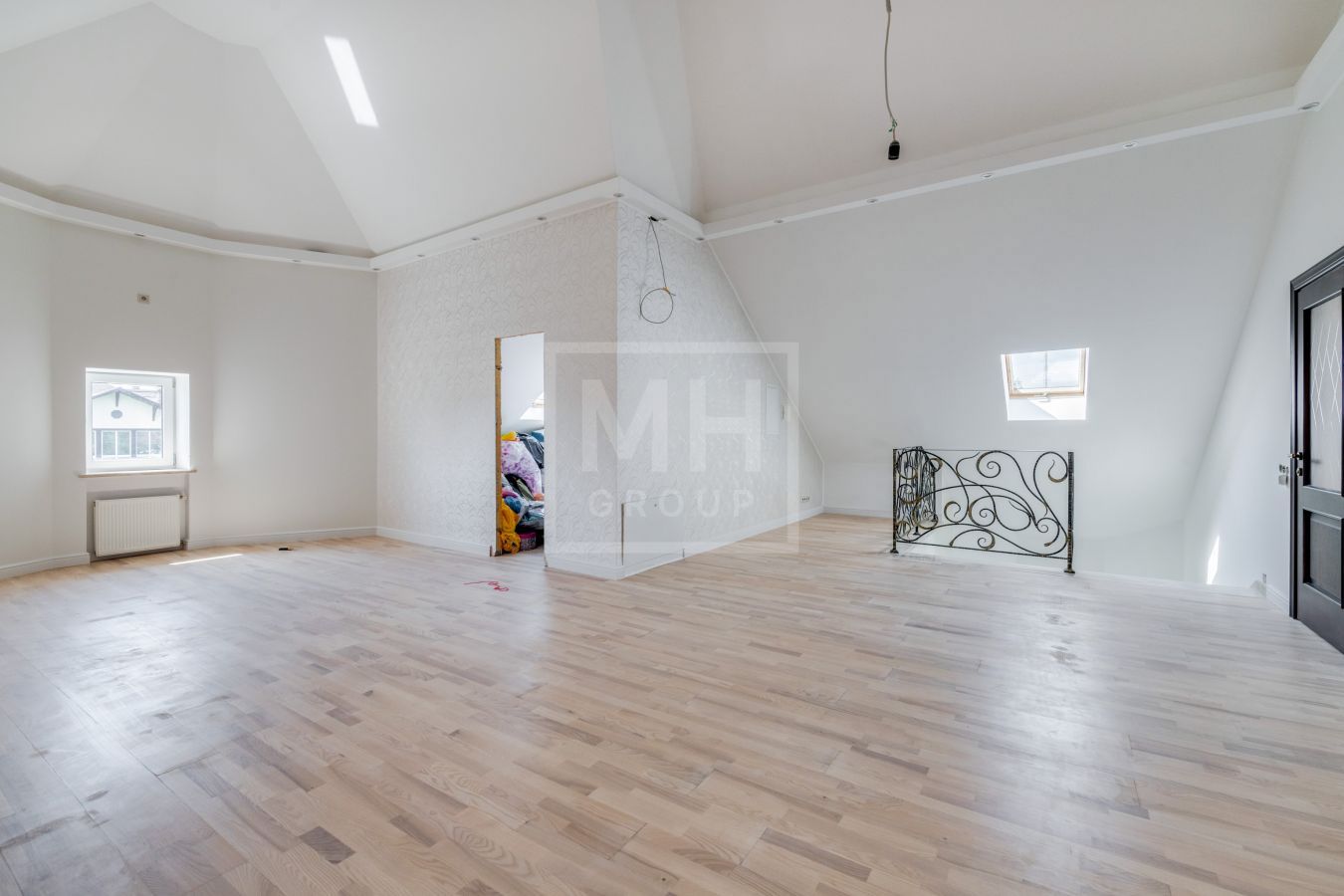 Предлагается к продаже дом площадью 500 кв.м. на участке 25 соток в деревне Лапино Одинцовского района. Дом рационально спланирован - выполнено зонирование кухни, столовой и гостиной, на первом этаже большая комната, которую можно использовать как спальню или кабинет; на втором этаже три спальни и два санузла; на третьем этаже три комнаты, санузел и большой холл, что позволяет оформить там зону отдыха с кинотеатром, бильярдной и гостевой спальней или в случае необходимости расположить две детские спальни и игровую. Количество комнат позволяет оборудовать в доме до 7 спален. Дом укомплектован мебелью. Рядом вся необходимая инфраструктура - торговый центр, Азбука вкуса, Оранж-фитнес, крытый рынок, госпиталь, перинатальный центр, автомойка, два детских сада, частная школа, остановка общественного транспорта и пр.