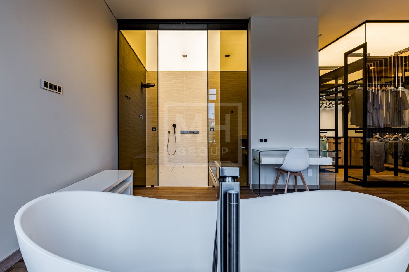 Таунхаус 289 м² на участке 3,99 сотки в «Прозорово». Всего 12 км от МКАД-быстрые выезды по Новорижскому и Рублёво-Успенскому направлениям. Рядом частная школа, детский сад, фитнесс «Ильинка-спорт», развитая городская инфраструктура. Здесь спокойно жить и удобно организовывать каждый день. Дом, в котором продумано всё для насыщенной жизни: работа, семья, спорт, приёмы гостей и редкие минуты тишины — без компромиссов в стиле и качестве. Почему этот дом понравится именно вам. Кухня мечты с техникой Miele: духовка, парокамби, индукция, ПММ, холодильник/морозильник, винный шкаф, вытяжка — единая эстетика и идеальная эргономика. Приватный мастер-блок: спальня, своя гардеробная, собственный санузел — личное пространство, куда «входит только спокойствие». SPA-душевые Hansgrohe/AXOR: термостаты, душевые системы RainDance/Rainmaker, ванны из литого мрамора — домашний ритуал красоты каждый день. Здоровый климат круглый год: тёплые полы REHAU, вентиляция TURKOV с охлаждением и подогревом, умное отопление ZONT. Тишина и порядок: электротехника ABB, умное освещение Denkirs, продуманные хозяйственные зоны, полноценная постирочная с Miele.