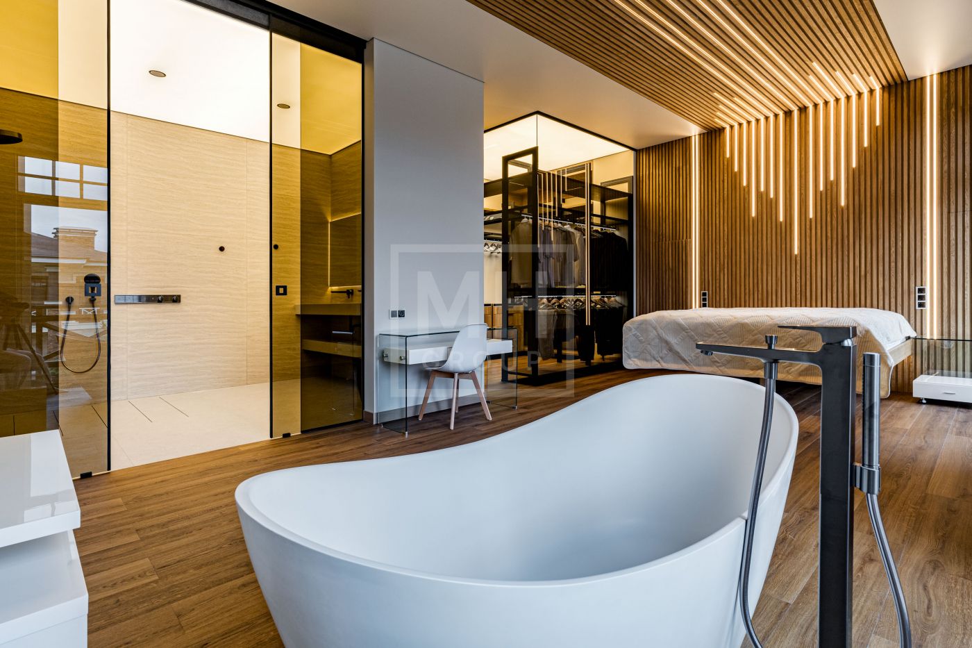 Этаж 2: Приватный мастер-блок с гардеробной и собственным санузлом. Дополнительно детская, кабинет для работы, ещё один санузел и балкон для утреннего кофе.