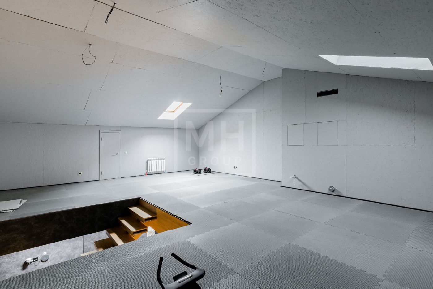 Этаж 3: Зал для спорта и йоги. Пространство трансформируется под ваши сценарии: пилатес, кардио, персональный кинозал или арт-студия.
