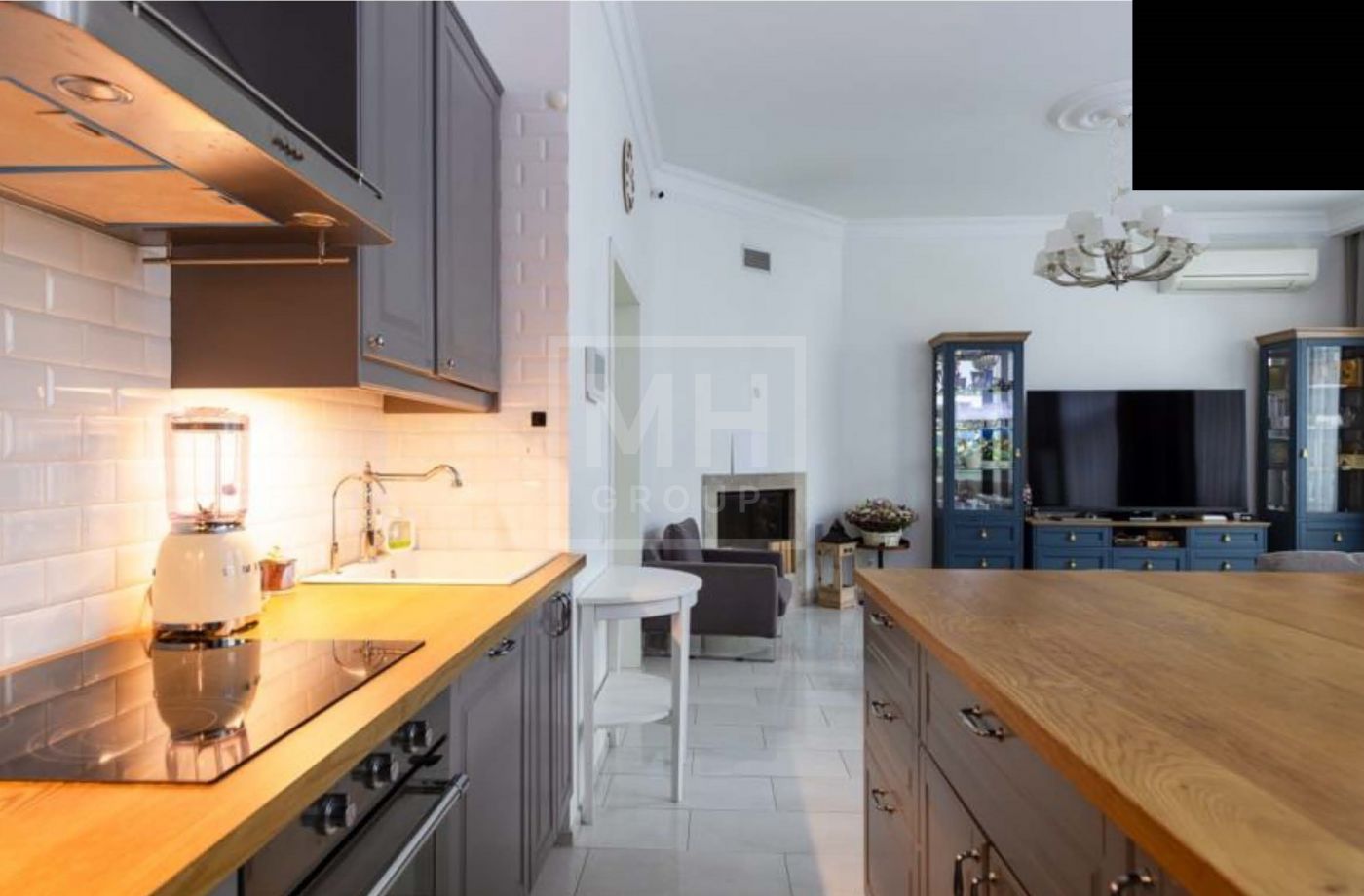Этаж 1: просторная прихожая, кухня-столовая с дровяным камином и выходом на террасу, гостевой санузел.
